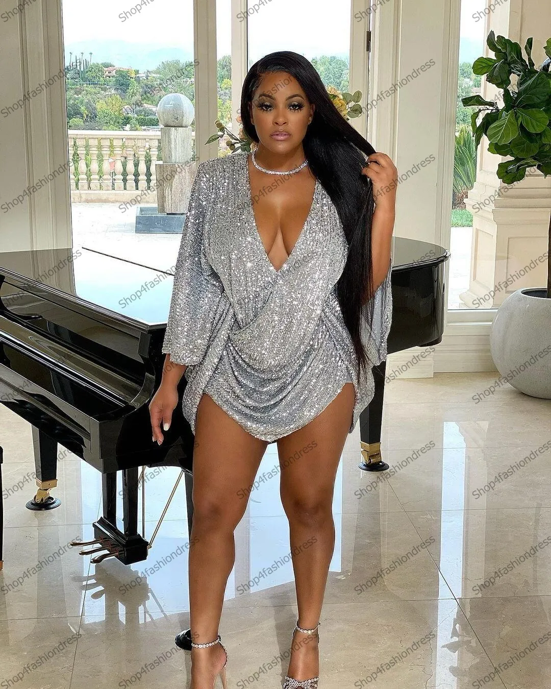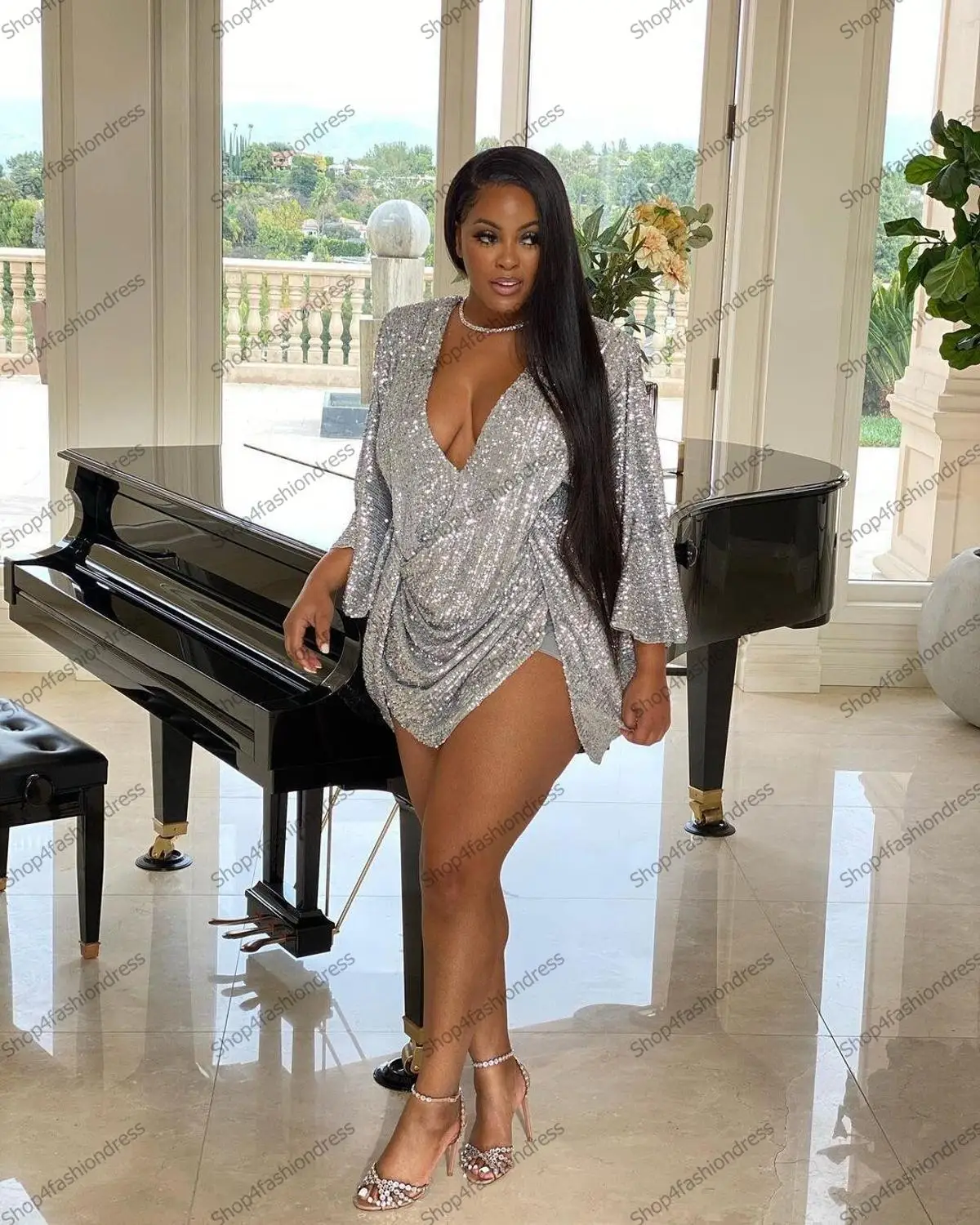Блестящие короткие вечерние платья с блестками Кепки рукава Оболочк...
