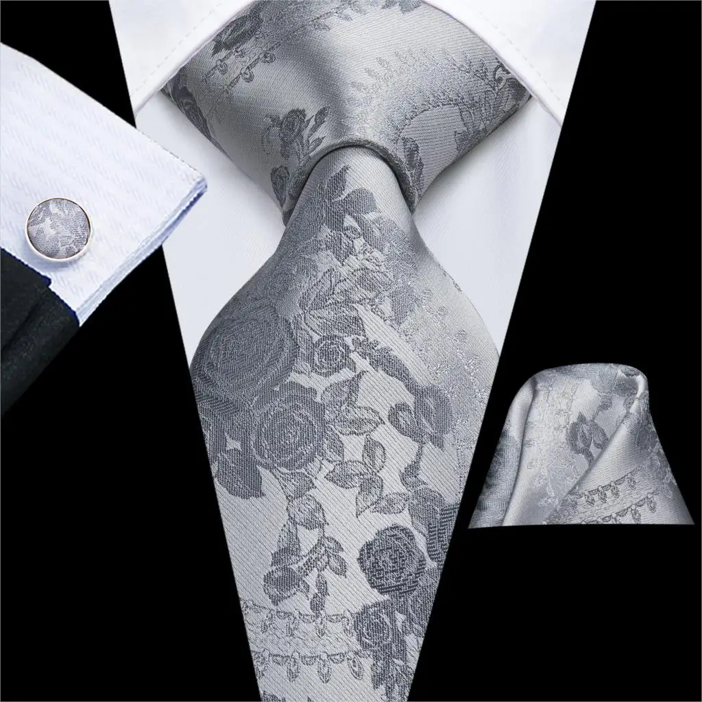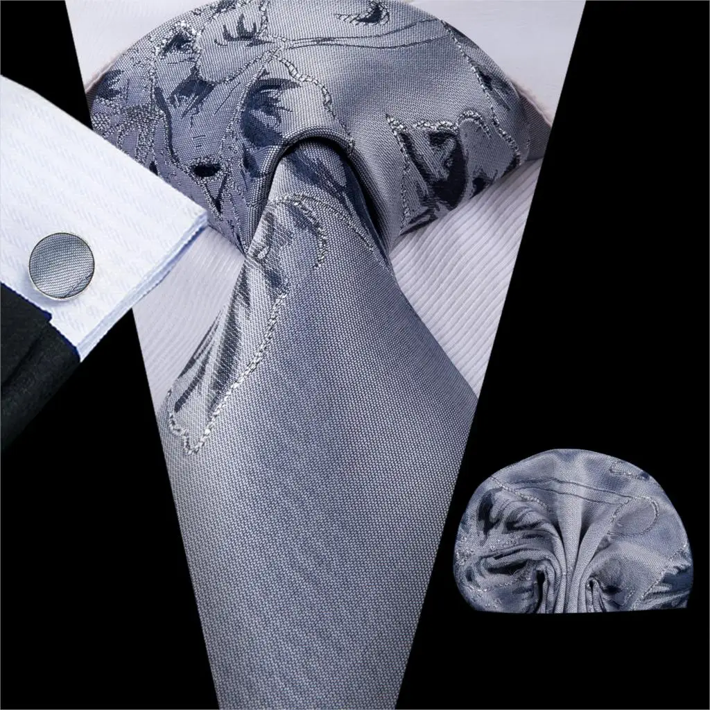 Модный дизайнерский однотонный шелковый галстук Hi-Tie серого цвета с рисунком Пейсли, Свадебный галстук, Подарочный галстук для мужчин, рубашка, платок, запонки, набор Деловой шейный галстук