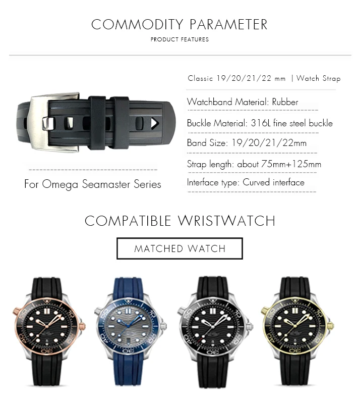 Ремешок силиконовый для часов Omega Watch Seamaster 300, 202122 мм