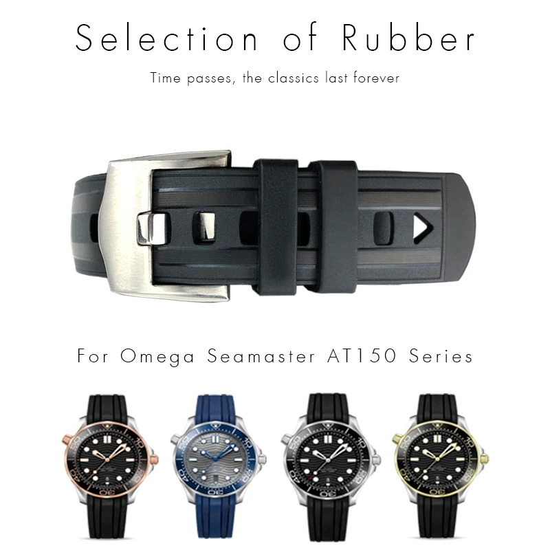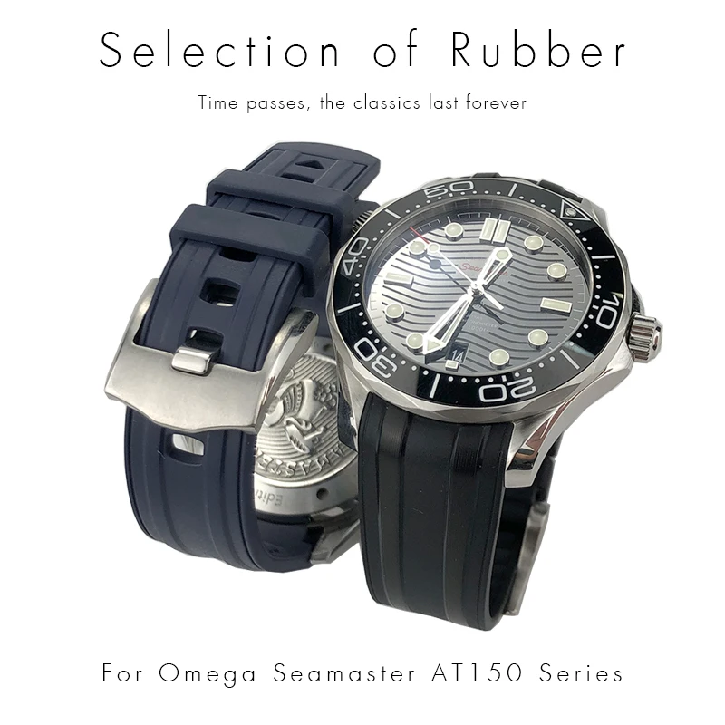 Ремешок силиконовый для часов Omega Seamaster 300 Speedmaster AT150 DE VILLE, 19-21 мм