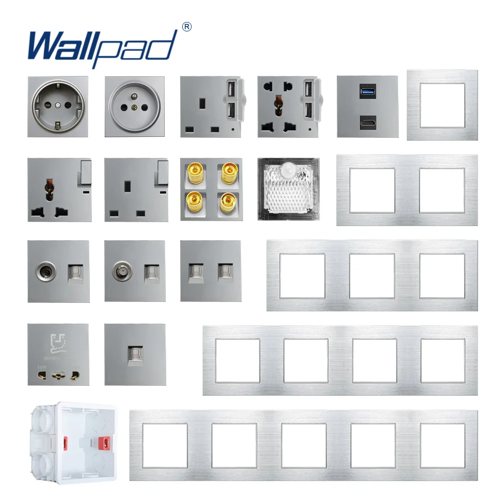 Настенная розетка Wallpad, модуль сделай сам из серебристой алюмини...