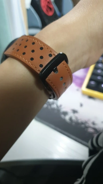 Материал товара дешевый. Если вы не посмотрите на другую сторону этого ремешка, вы можете подумать, что это черный кожаный ремешок с оранжевыми деталями (оранжевый/черный), но он «точечный», и он выглядит лучше, чем раньше. Плохо, что я не выгляжу лучше на этом товаре.