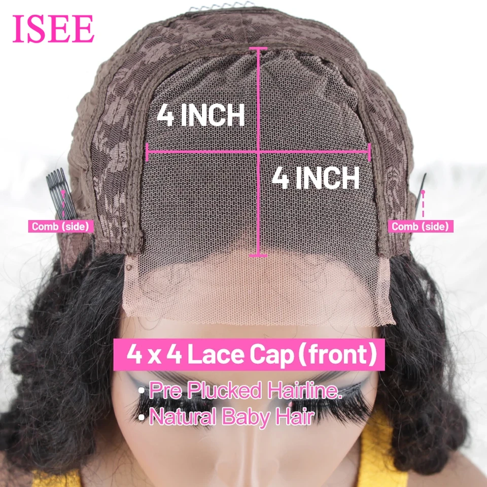 ISEE Волосы Кудрявые кудрявые Закрытие 4*4 Бесплатная часть 100% Re...