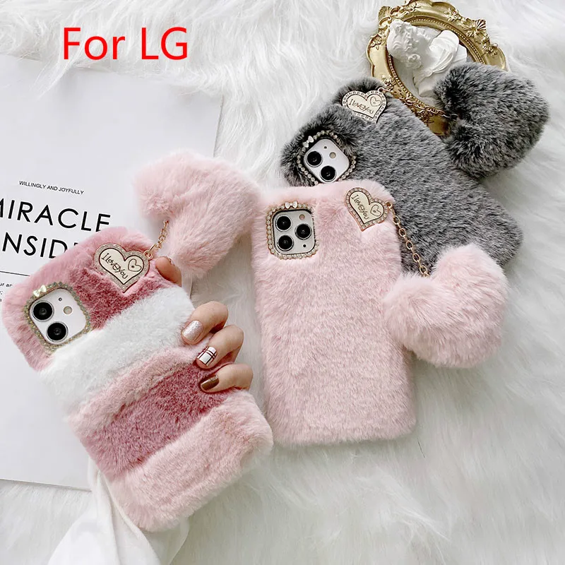 Плюшевый чехол для LG G8 Thinq G8X, чехол для телефона lg G7 G6 G5 Stylo 6 Q6 Q7 Q60 V20 V30 V40 V50 K61 K40, Модный меховой пушистый чехол с подвеской