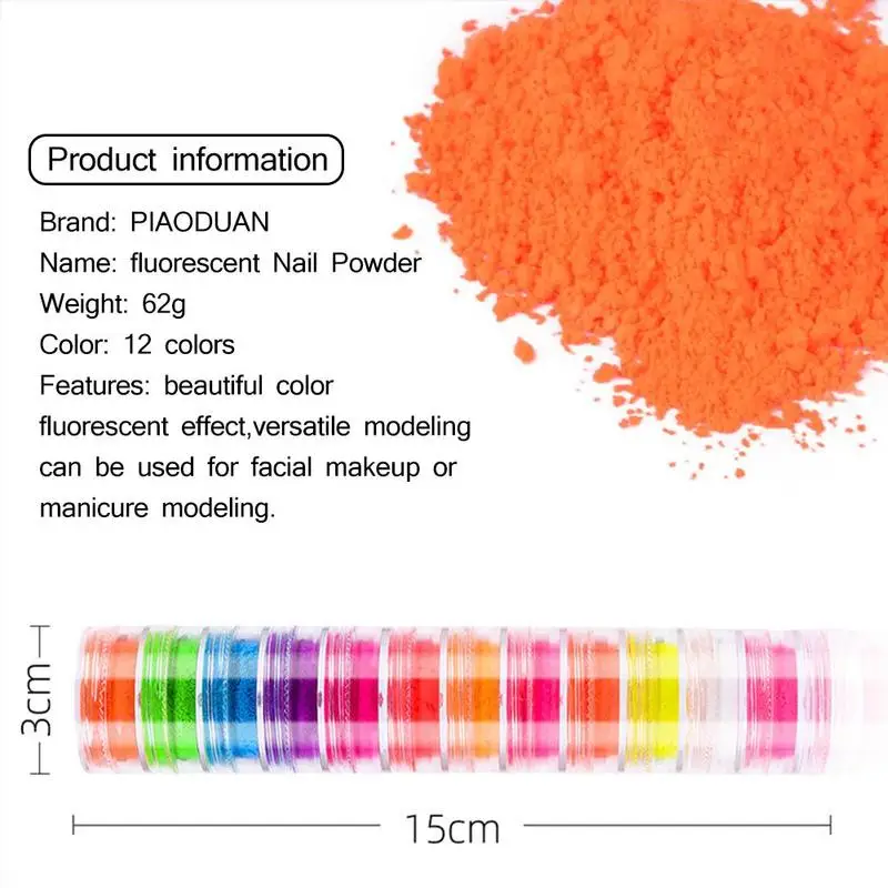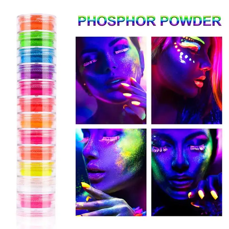 Люминесцентный порошок ружье гвоздя набора Блеск порошок 12 Цветов световой флуоресцентный пигмент порошок для ногтей блестит на очень тонком каблуке пигмент