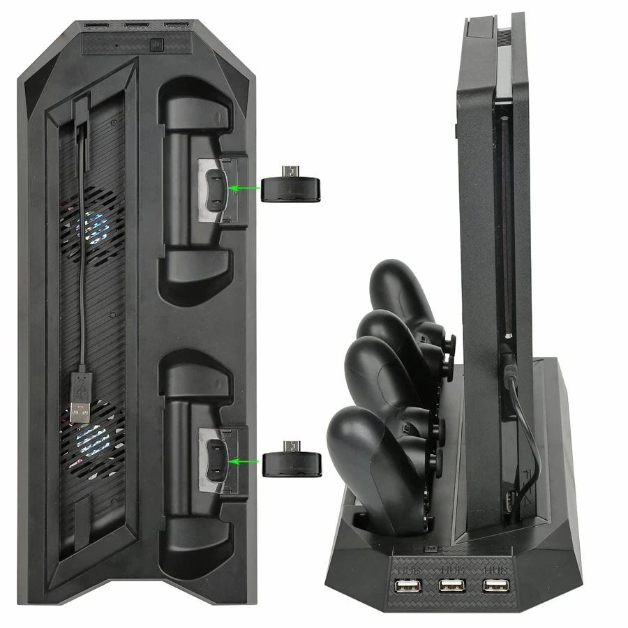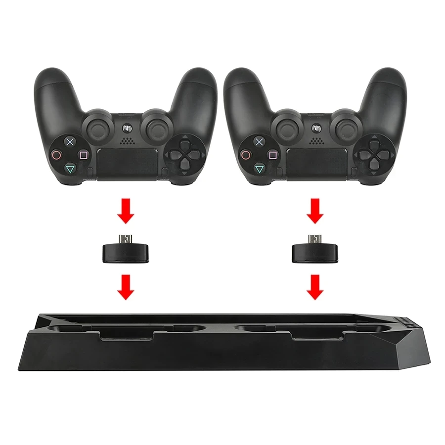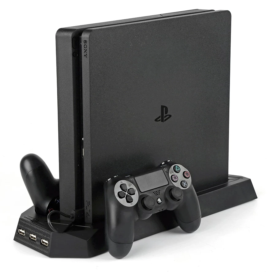 Вертикальная охлаждающая подставка для PS4 Slim с двойным джойстиком, зарядная станция с USB-интерфейсом и 3 внешними концентраторами для Playstation 4, PS4 Slim