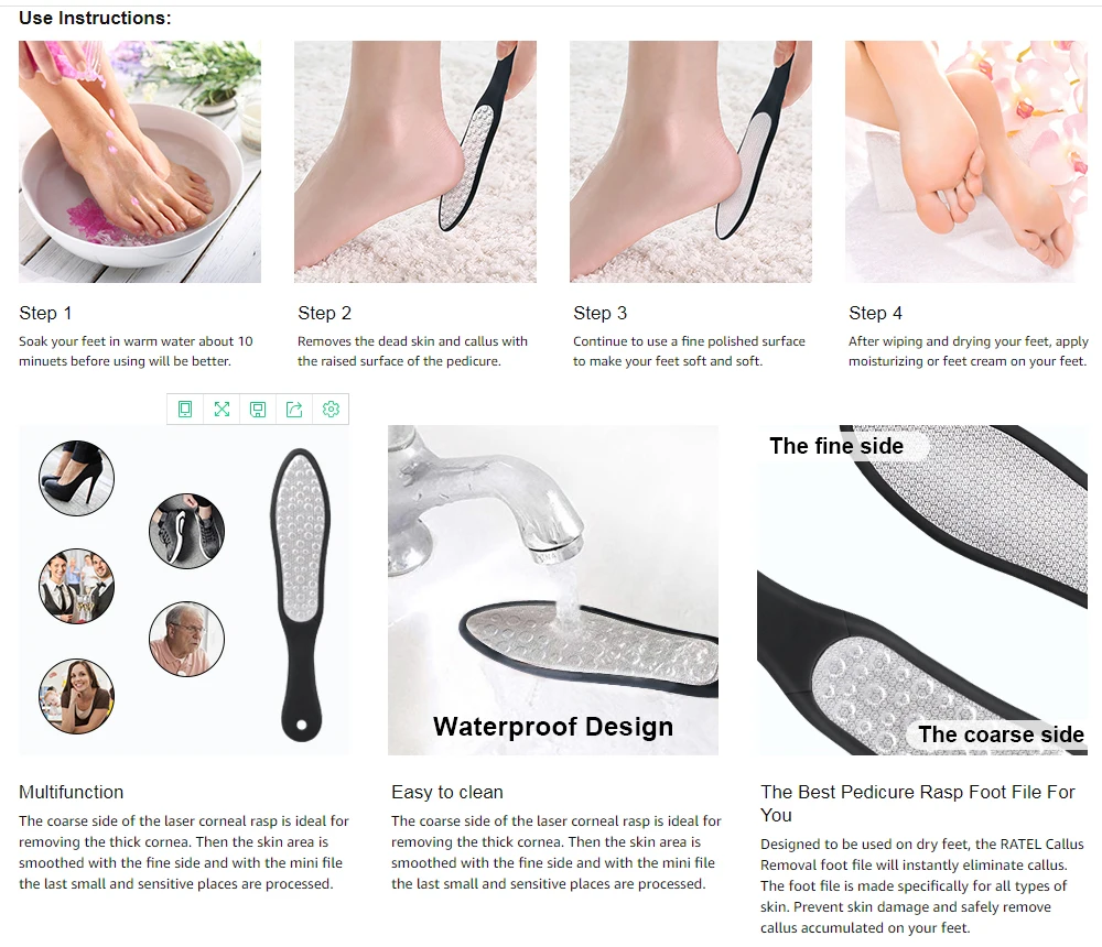 Двухсторонние пилки для ног из нержавеющей стали, для жесткой кожи ног, для педикюра, скребок, пилка для ног, для удаления мозолей, для ухода за кожей ног