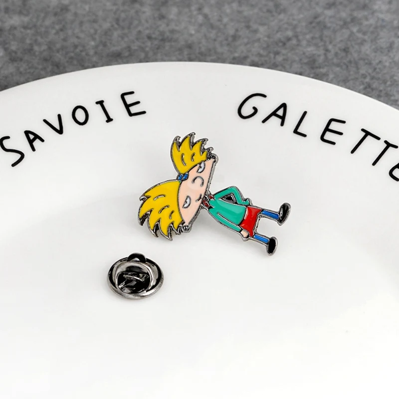 Рисунок из мультфильма; Креативное брошь рисунок золотистыми волосами Прохладный мальчик металла эмали штырь джинсовая рубашка значок ювелирные изделия для девочек и мальчиков подарок