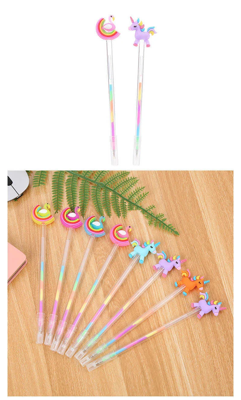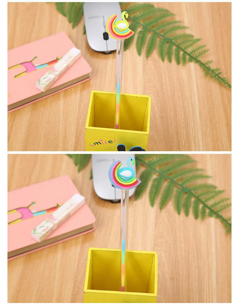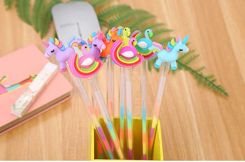 Гелевые маркеры с рисунком в виде радужного лебедя, единорога, студенческие ручки, 6 цветов