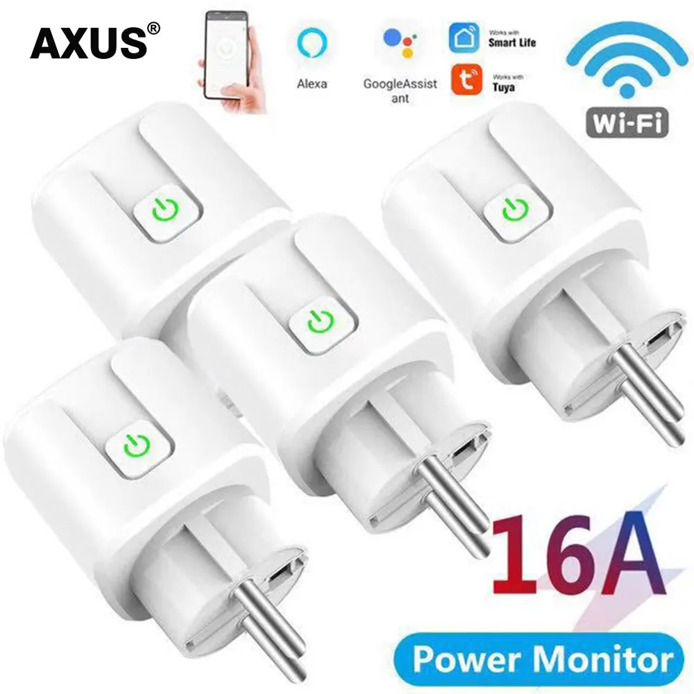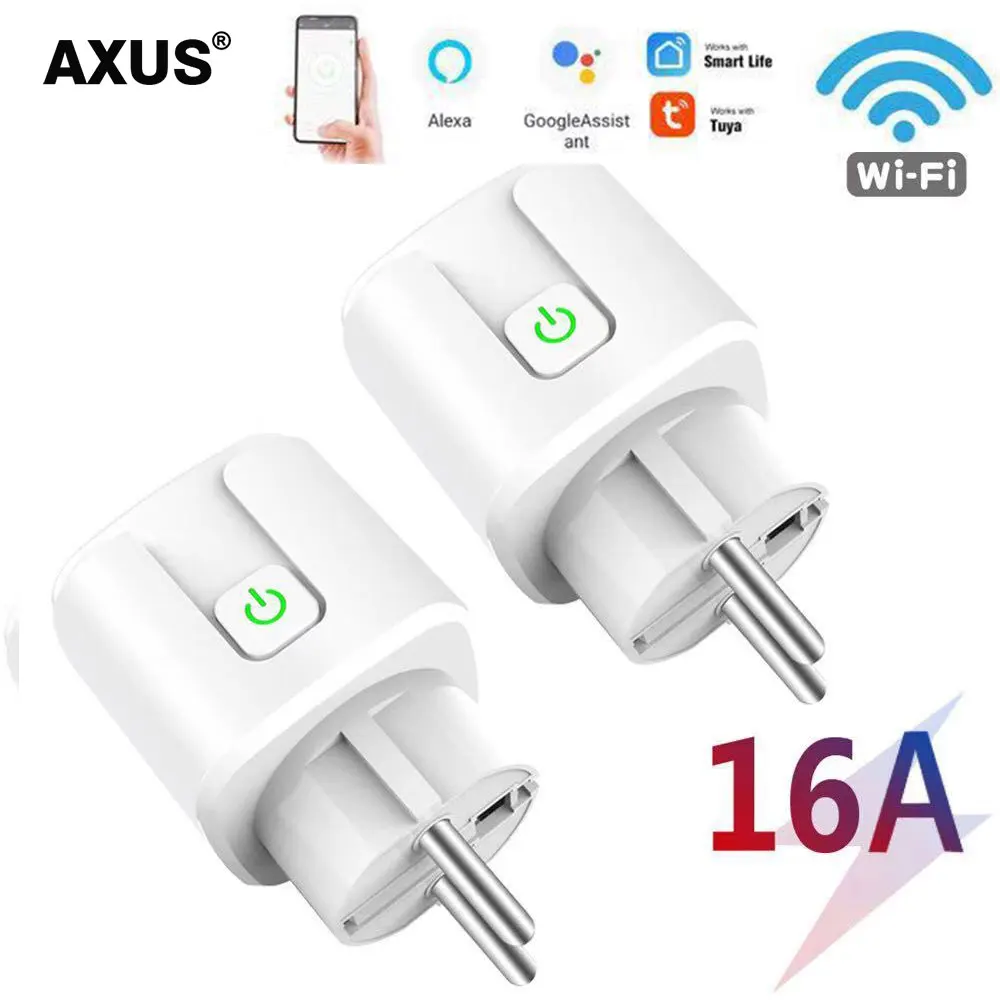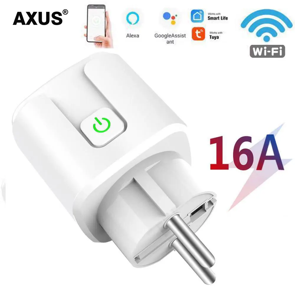 AXUS Tuya Wi-Fi Smart Plug адаптер Беспроводной пульт дистанционного управления голосовой Управление Мощность монитор таймер розетка для Google Home, Alexa, 16A AC100-220V