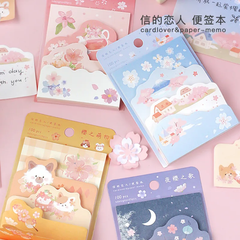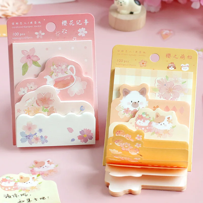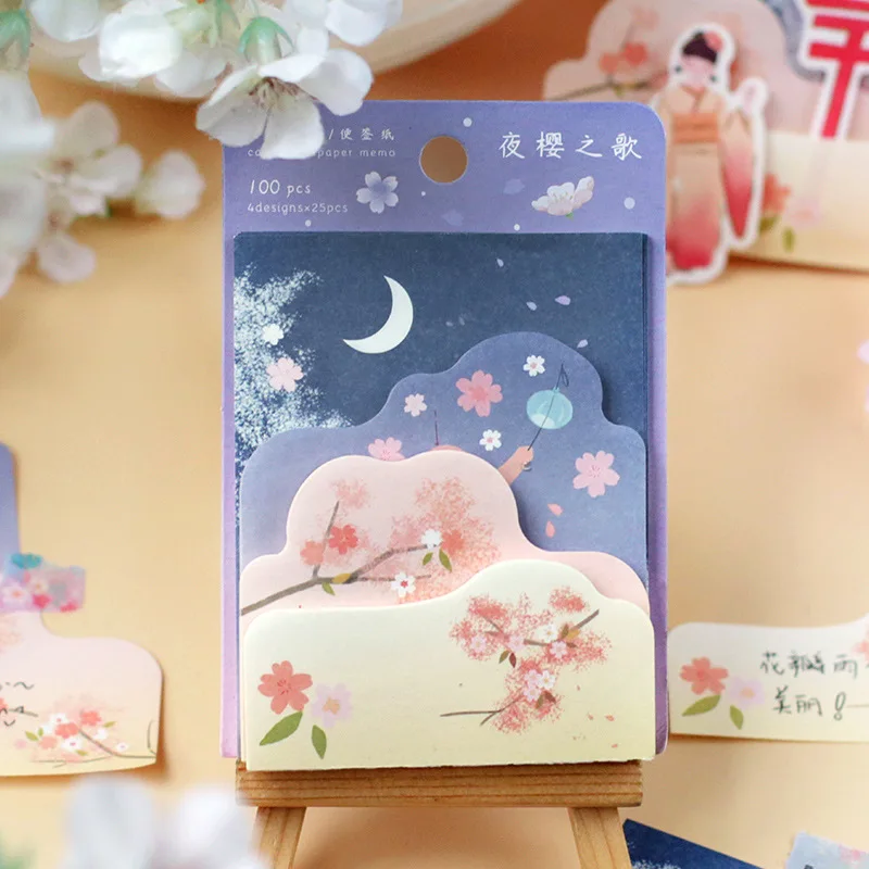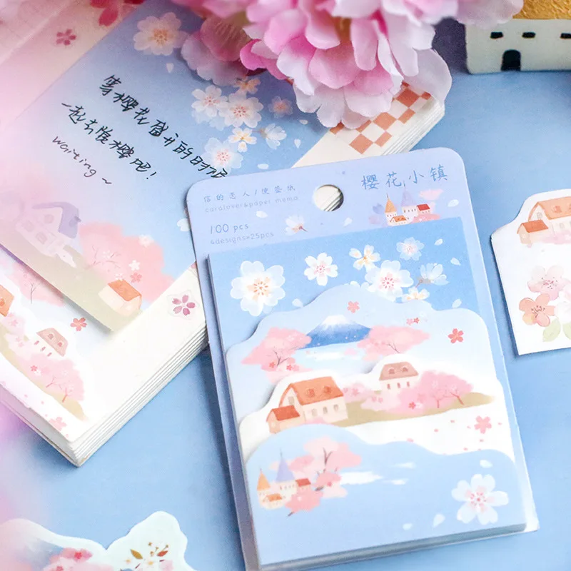 100 листовлот из блакнота для бумаги для заметок на клейкой основе, цветущая вишня, время Бумага дневник в стиле Скрапбукинг наклейки для офиса и школы канцелярские блокнот