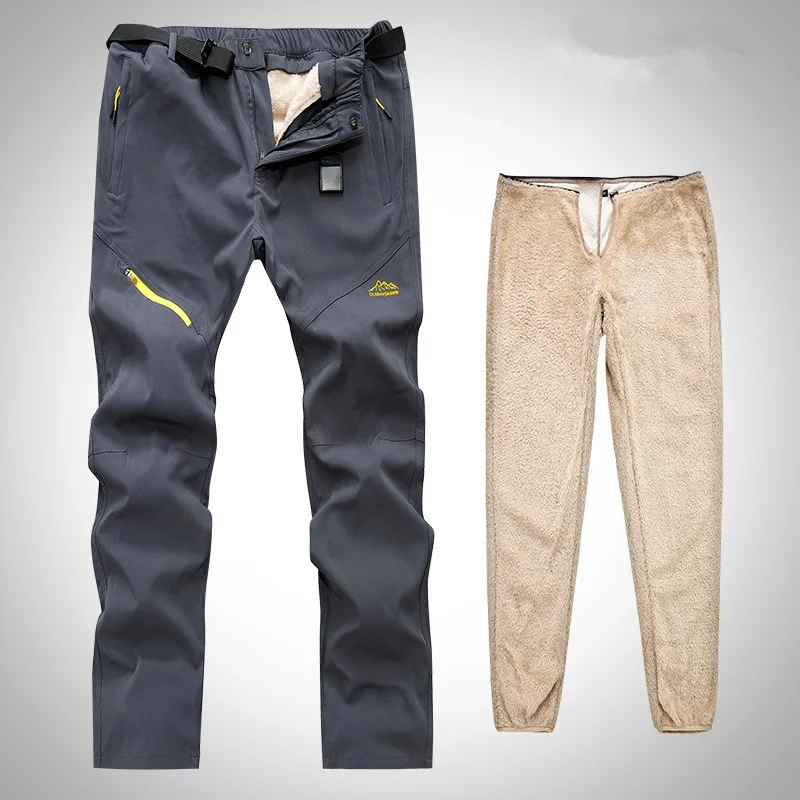 Мужские зимние уличные теплые штаны, Осенние Тактические Водонепроницаемые длинные штаны, треккинговые Походные штаны со съемной меховой подкладкой, бархатная подкладка