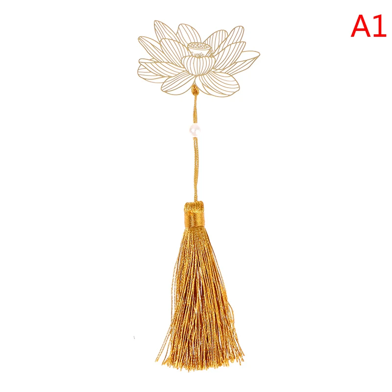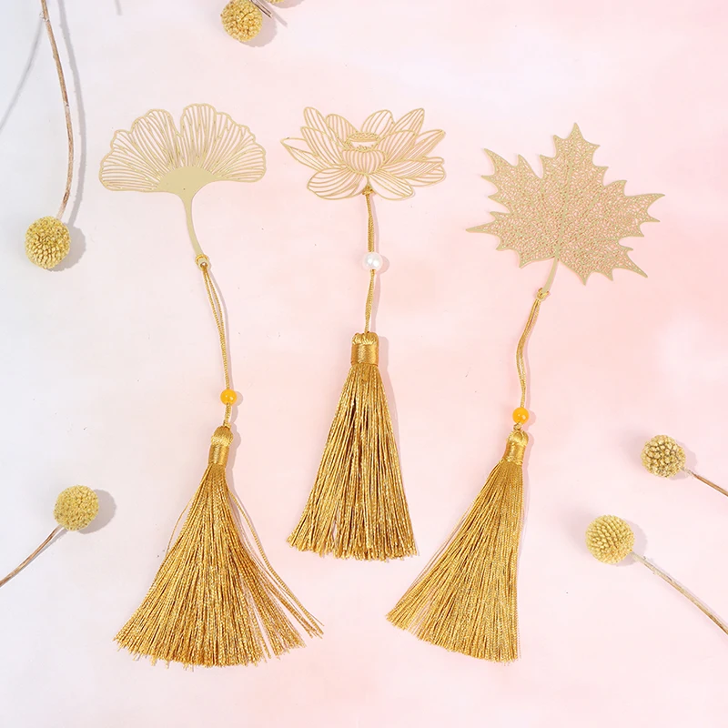 Творческий Китайский Стиль золотистого металла Лотос с выемками заколка кисточкой закладки канцелярские принадлежности закладки для книги аксессуары офисные школьные принадлежности, блокноты