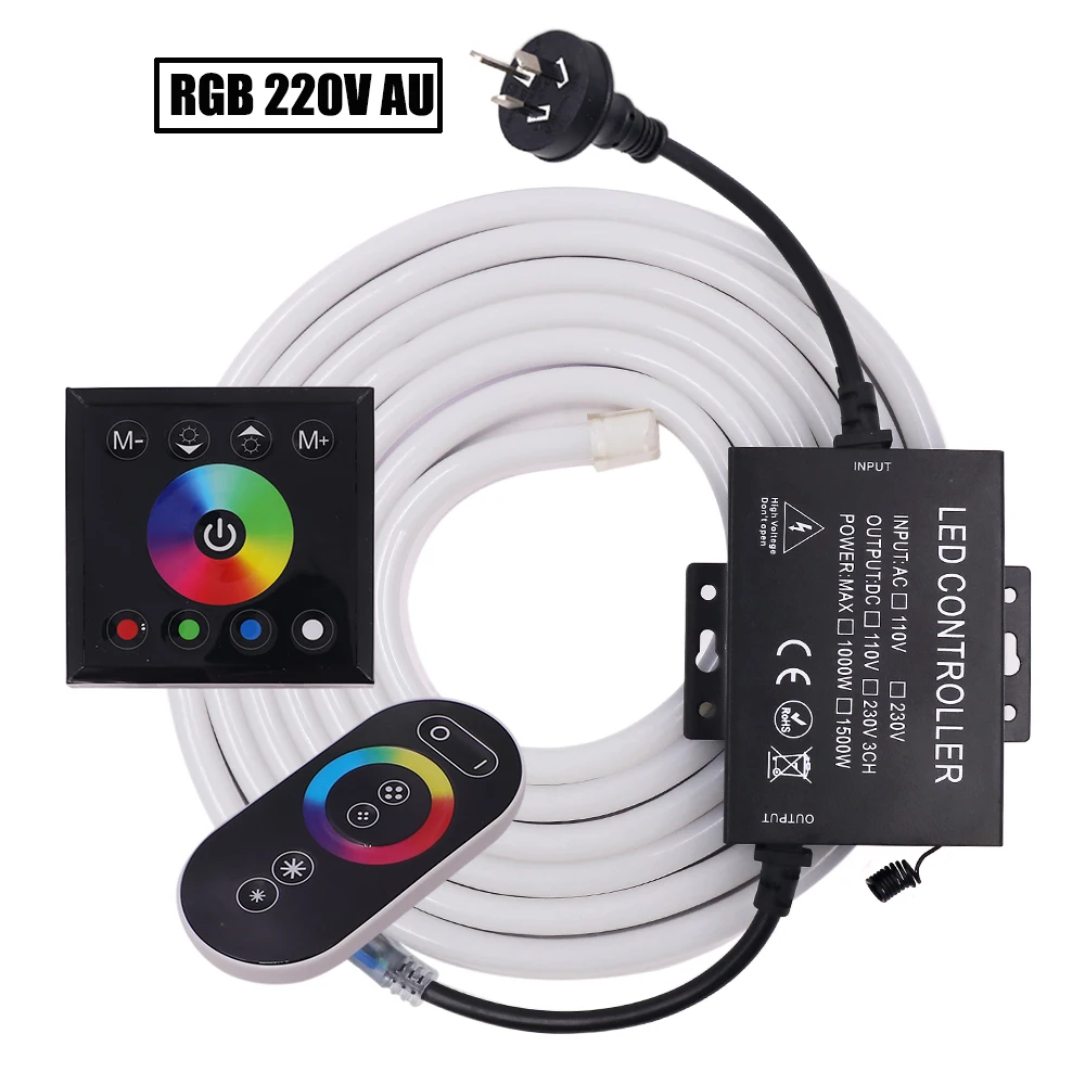 RGB Neon Ligh = неосветильник + настенный сенсорный переключатель управления + RGB контроллер + полный сенсорный пульт (без батареи) + зажим