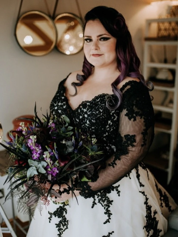 Женское свадебное платье, винтажное черное кружевное платье с длинным рукавом и V-образным вырезом, с прозрачной спиной, ТРАПЕЦИЕВИДНОЕ свадебное платье 2021