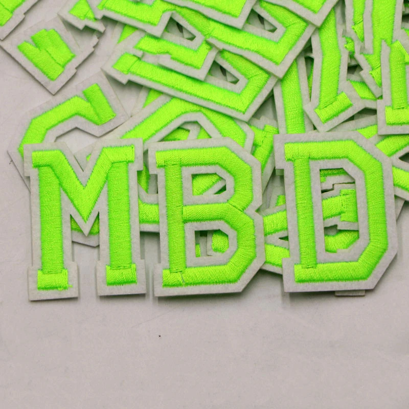 Флуоресцентная зеленая нашивка с английскими буквами, 3D вышитая искусственная нашивка для одежды, термоклейкая нашивка с именем для футболки