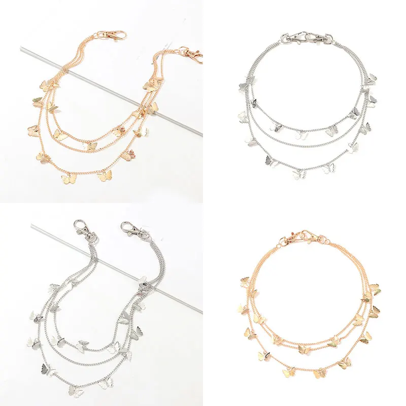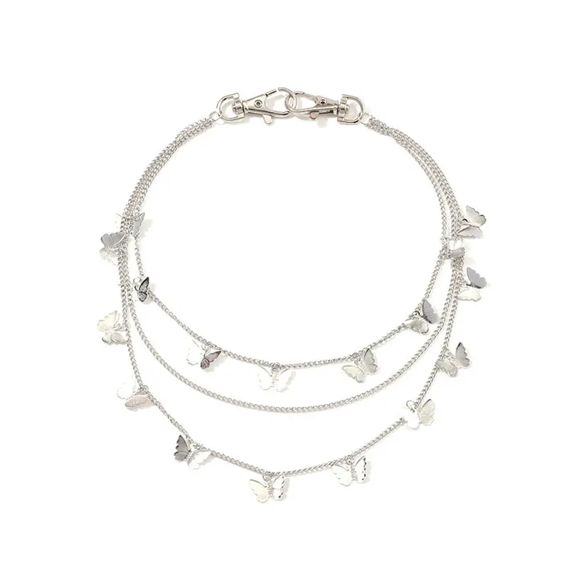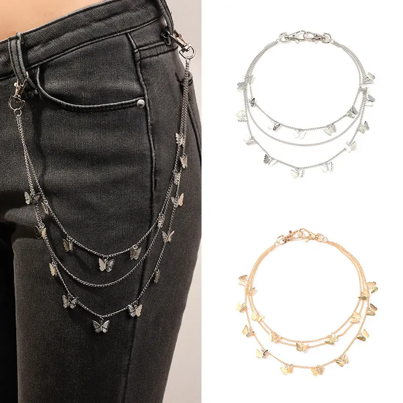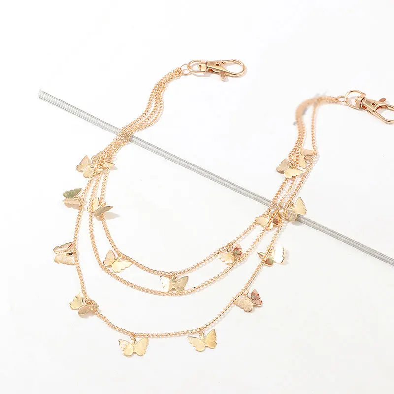 Ремень женский трехслойный в стиле хип-хоп, уличный пояс с бабочками с цепочкой-бабочкой, для штанов, крючок для брюк