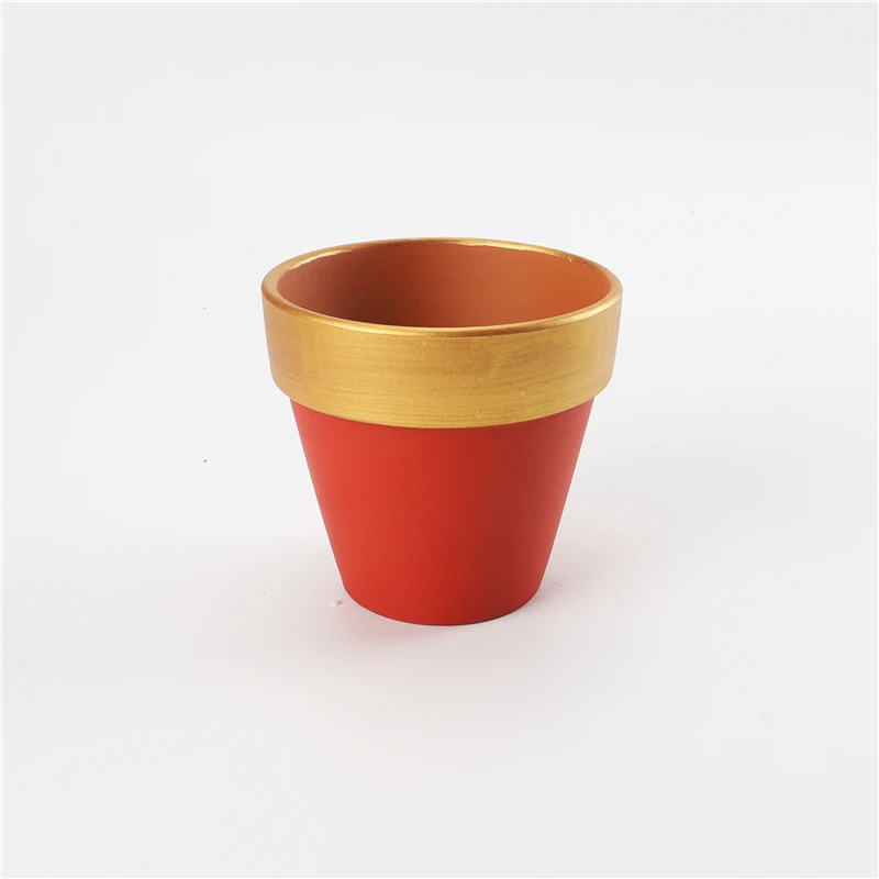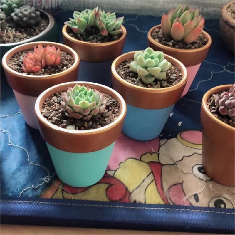 Милые мини глиняные горшки, глина, Золотая подкладка, керамический цветочный горшок, горшки для кактусов, горшки для суккулентов