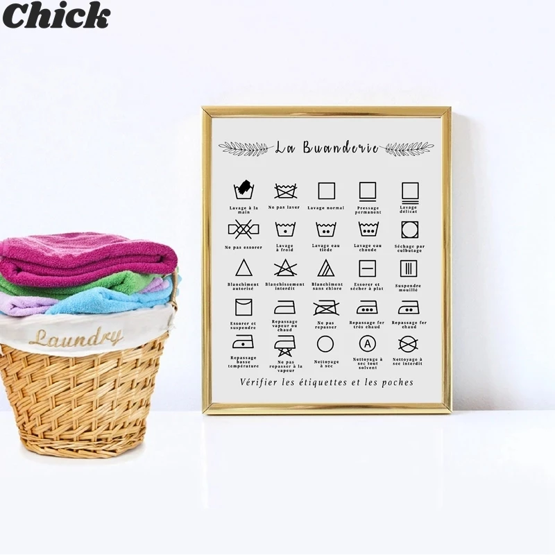 Французский плакат с символом стирки, черно-белый плакат, Настенная...