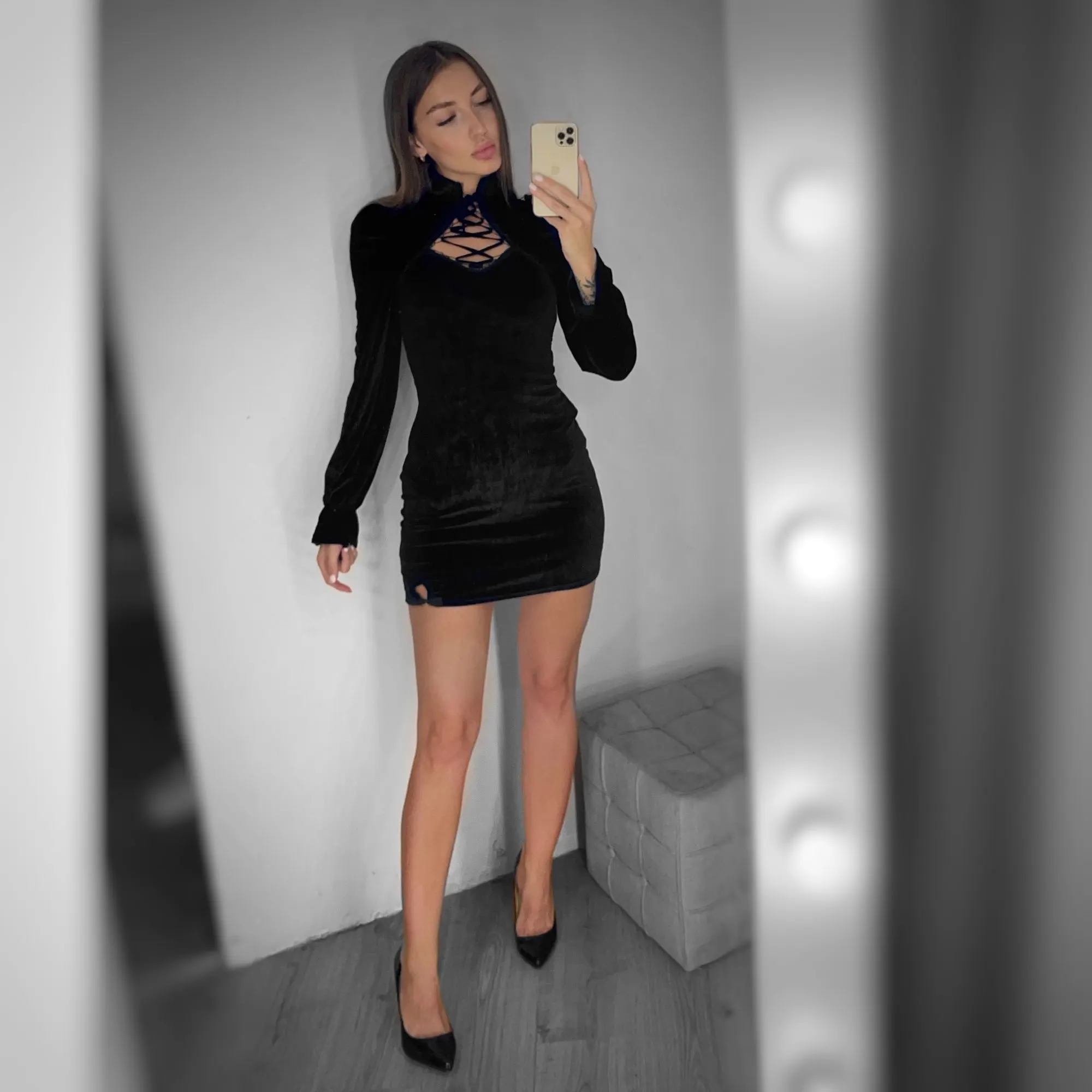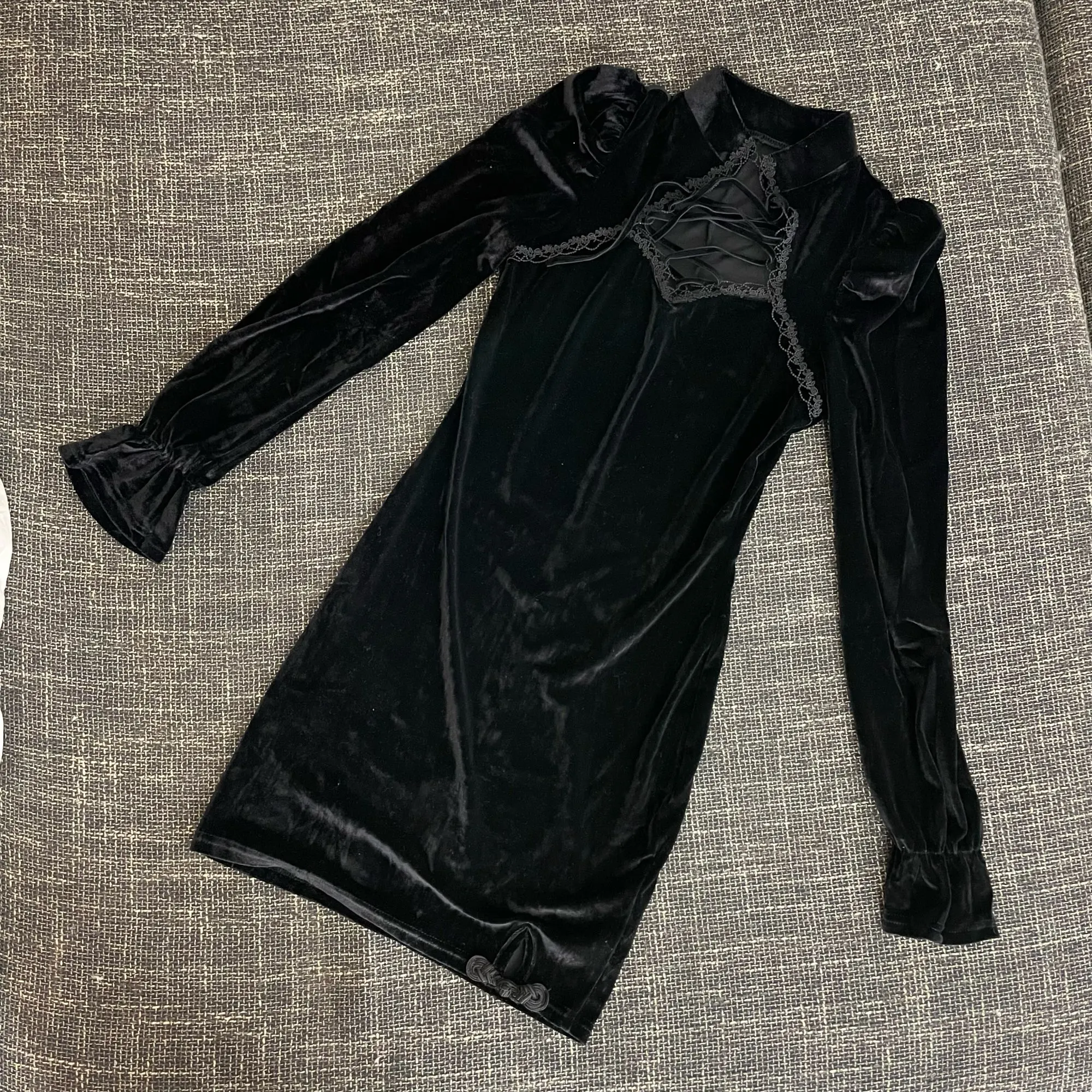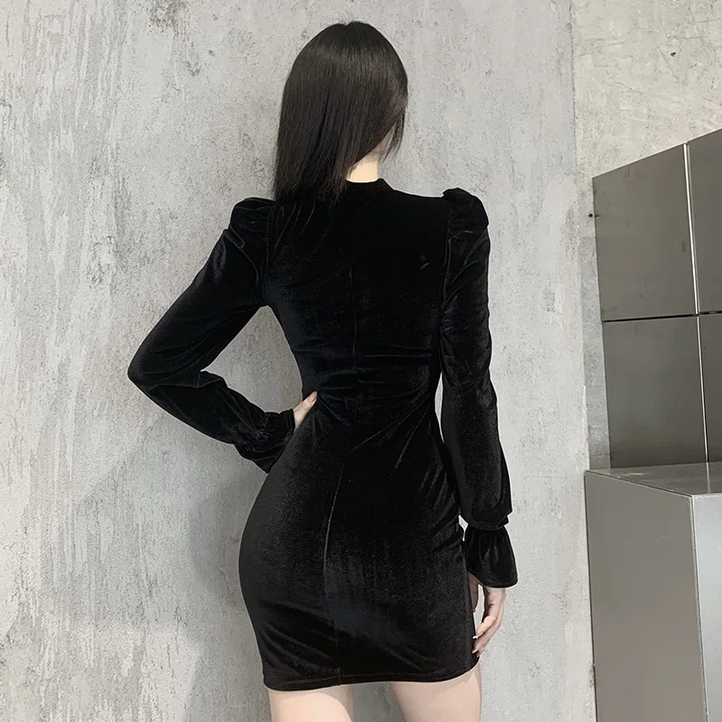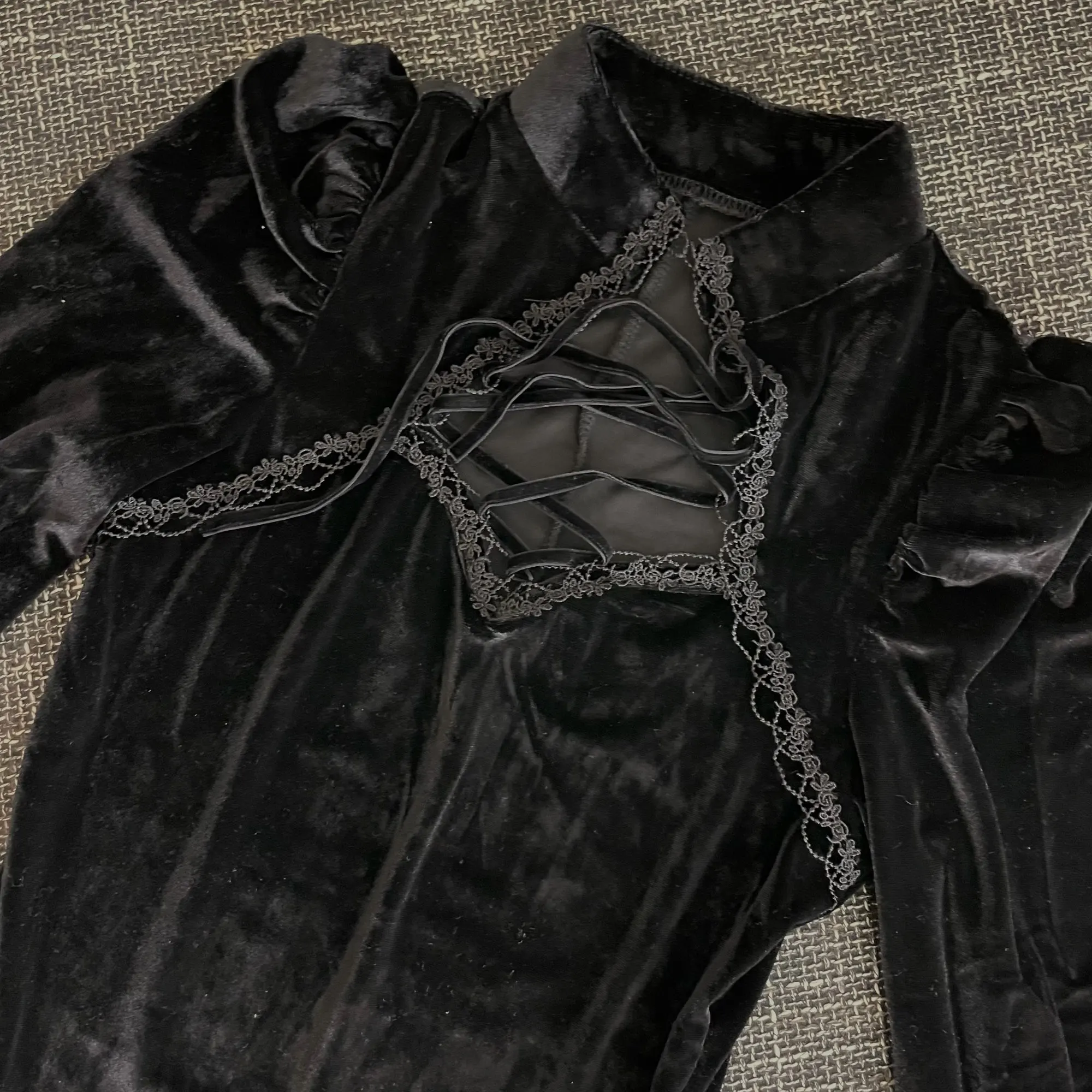 Мини-платье Helisopus женское бархатное, винтажное элегантное облегающее ажурное, в стиле Харадзюку, с поясом, в готическом стиле, гранж-платье