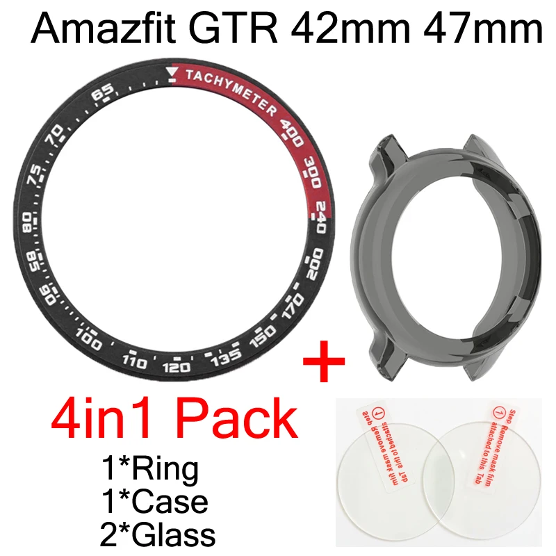 Совместимость:-- Huami amazfit gtr 47 мм, 42 мм Упаковка включает в себя:1 чехол из ТПУ1X Безель кольцо Крышка2X Защитное стекло для экрана1X влажные салфетки1X сухие салфетки(Примечание: часы в комплект не входят)
