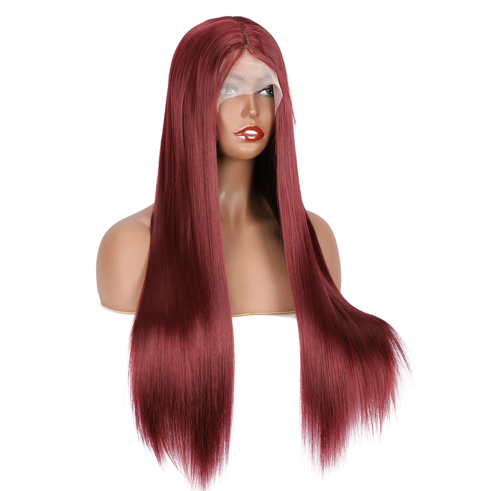 Парик для чернокожих женщин, длинные шелковистые прямые волосы, синтетические волосы, с укладкой Baby Hair, термостойкий, для косплея, повседневный