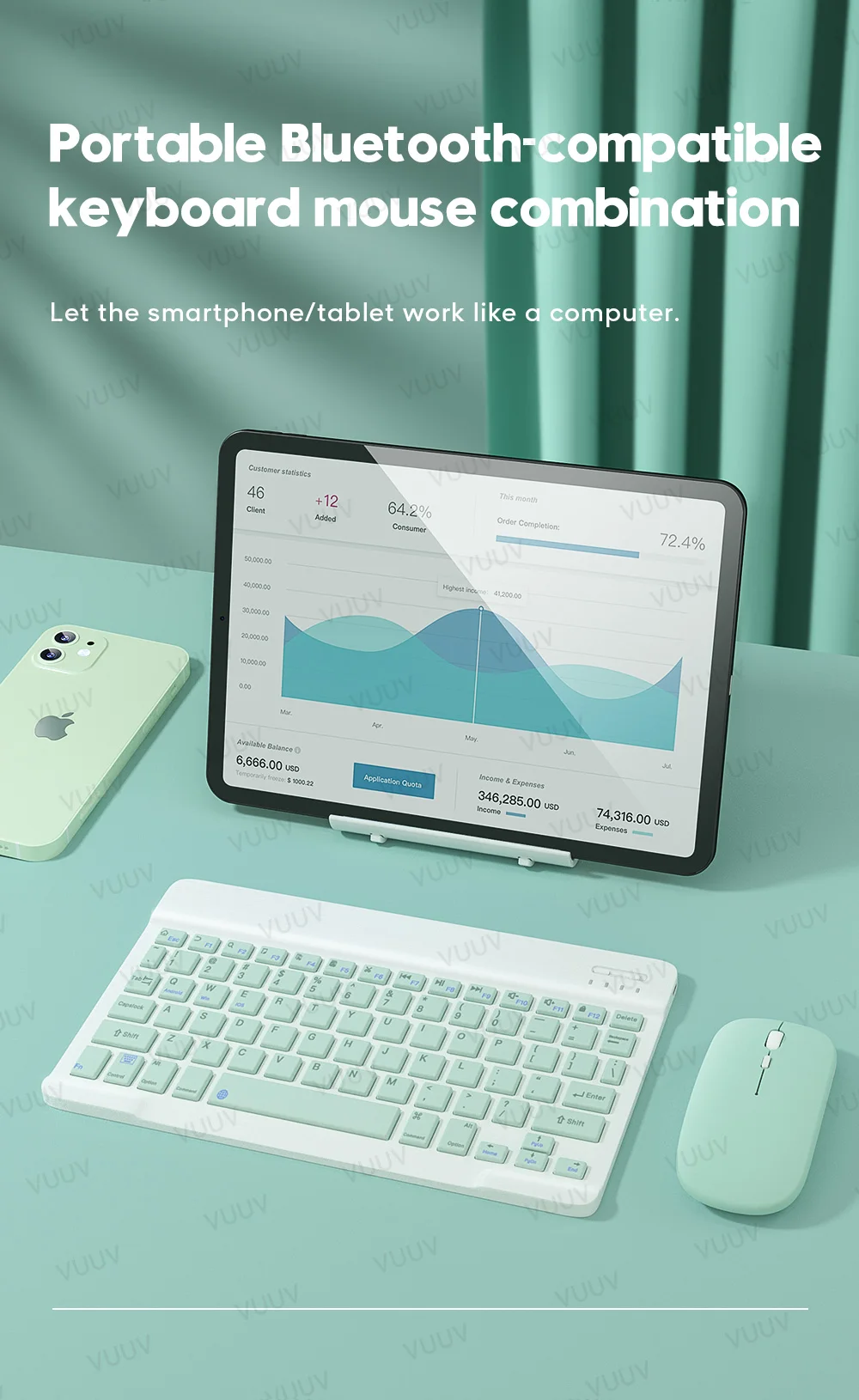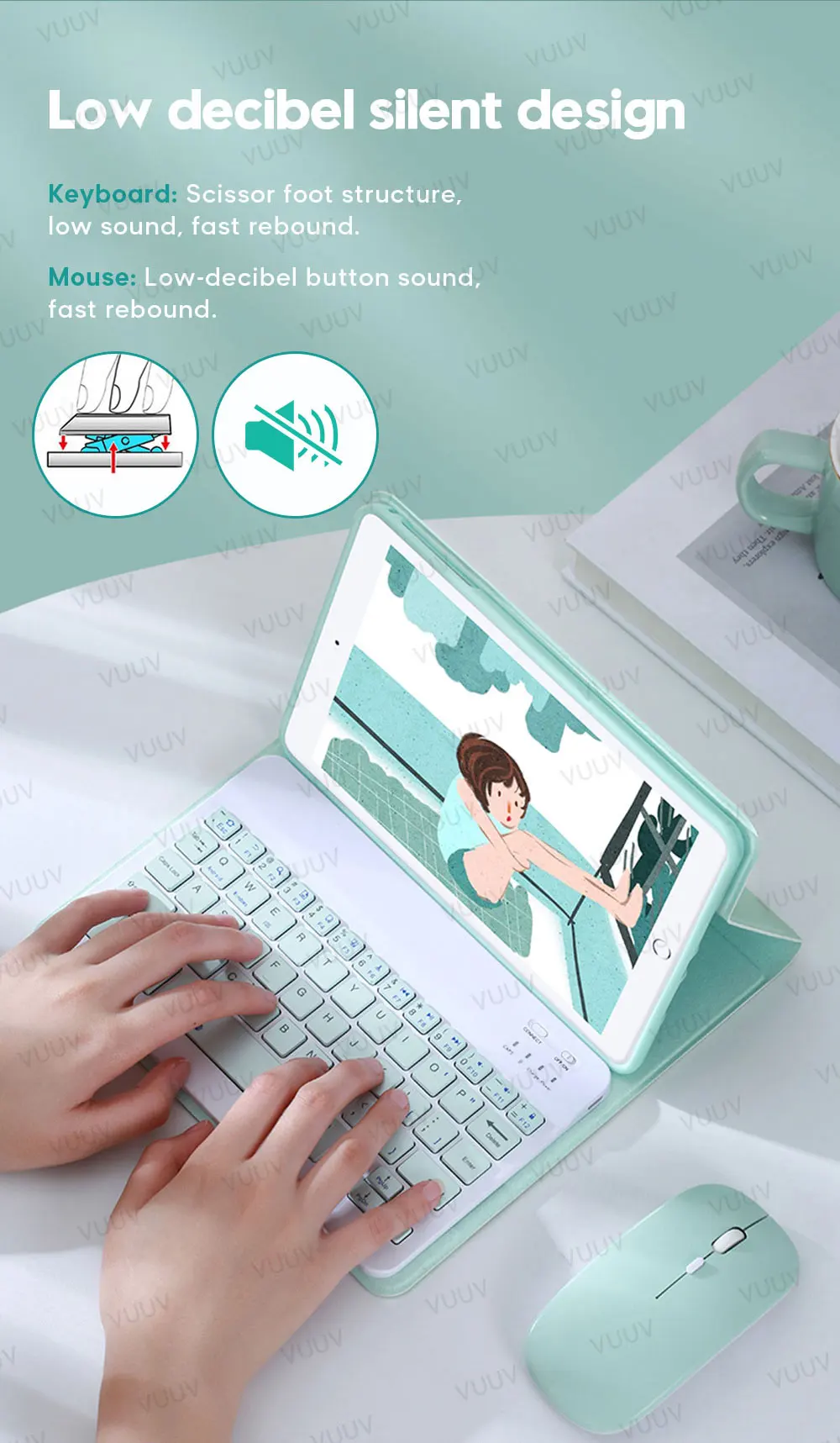 Отличный продукт, цвета яркие, а клавиатура очень тонкая с большой легкостью движения. Клавиатура и мышь быстро подключаются к моему планшету LG, и интерфейс очень хороший