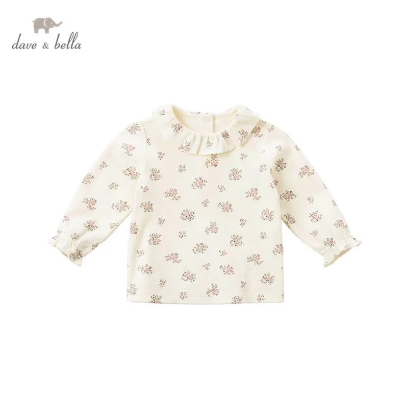 DBJ16826-2 нижнее белье в стиле бренда dave bellaвесна, сказочное детское платье для девочек с милым цветочным принтом, футболки для детей, топы для девочек, детская мода, футболки