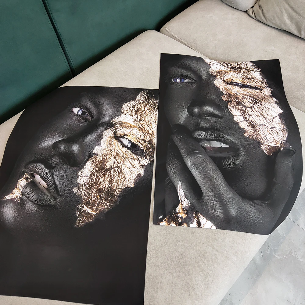 Настенная живопись без рамки, плакат с изображением женщины в африканском стиле черного и золотого цвета, с красивым лицом, для гостиной, домашнего декора