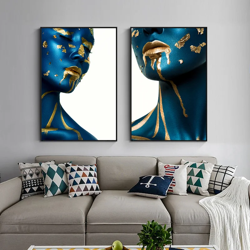 Настенная картина Синяя Золотая женщина в скандинавском стиле, Совр...