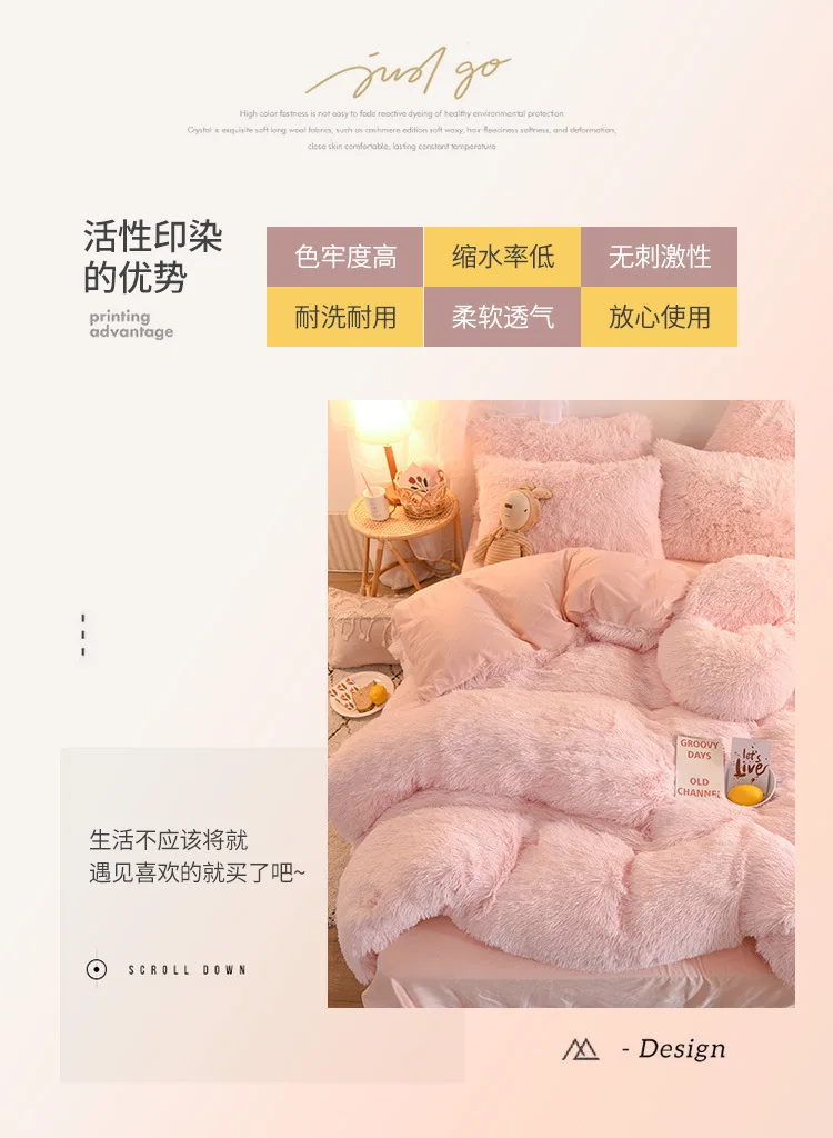 Скандинавский однотонный плюшевый комплект пододеяльника с простыне...