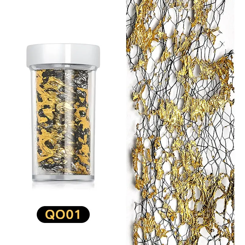 3D сетчатая наклейка для ногтей, 1 шт., золотая, серебряная сетчата...