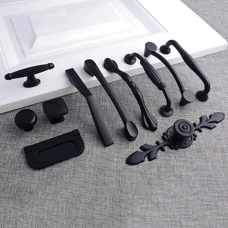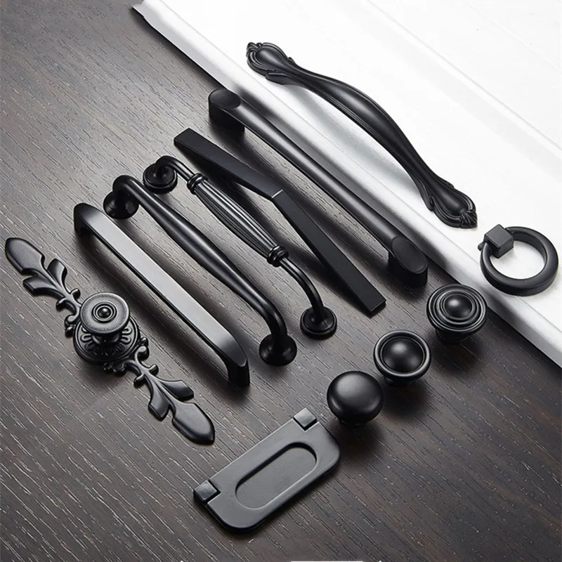 Черные ручки для шкафов из американского алюминиевого сплава, твердые ручки для ящиков, кухонный шкаф дверные ручки для гардероба, мебельная фурнитура