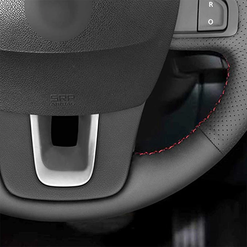 Сшитая вручную черная оплетка рулевого колеса из искусственной кожи...