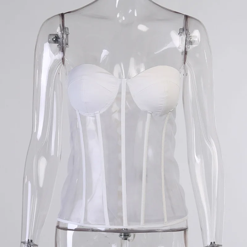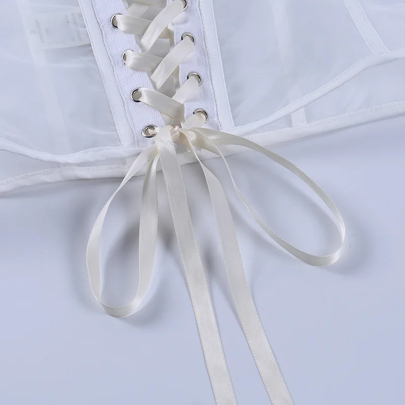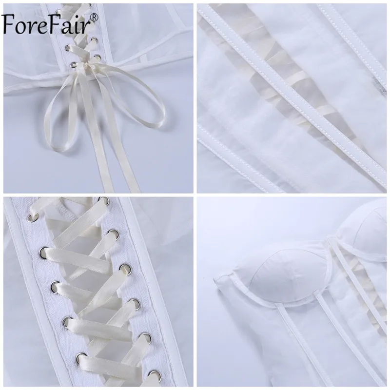 Forefair 2021 летний сексуальный сетчатый топ, женский черный, белый корсет, майка на шнуровке, прозрачный топ для вечеринок, клубов, Женский Топ