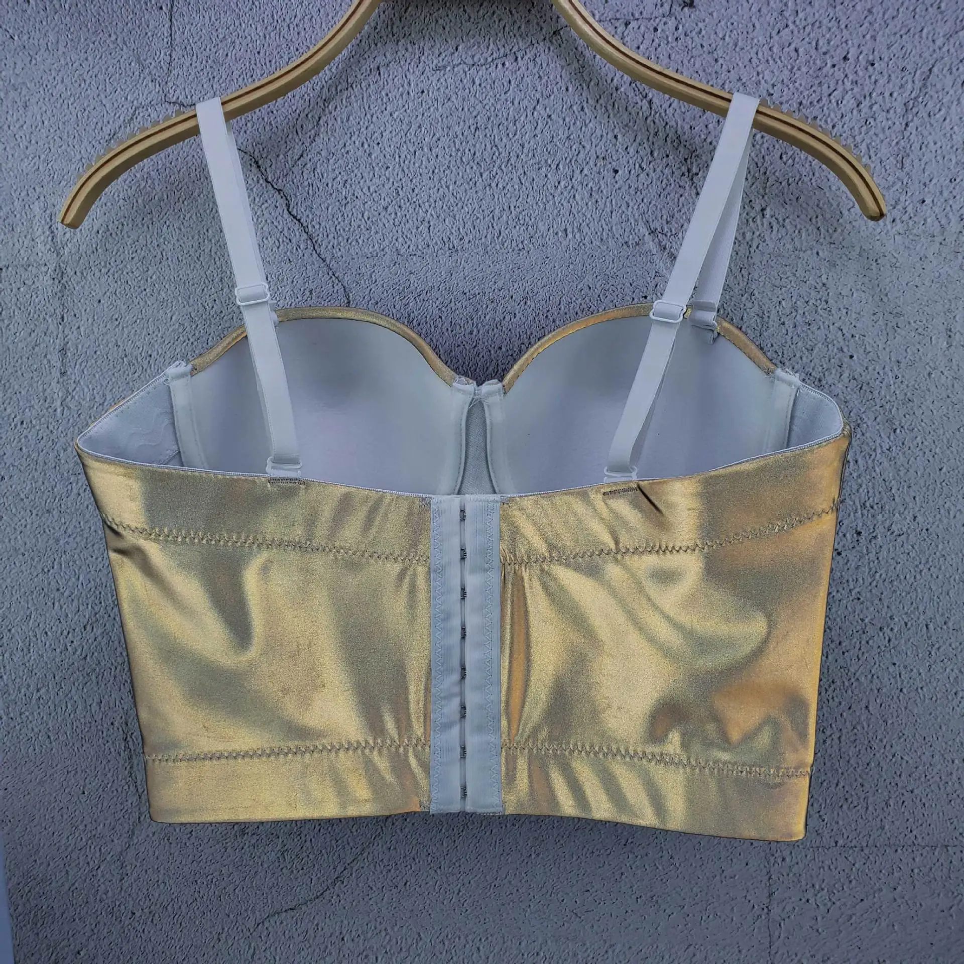 Женский топ-бюстье для танцев и выступлений, золотистый облегающий ...