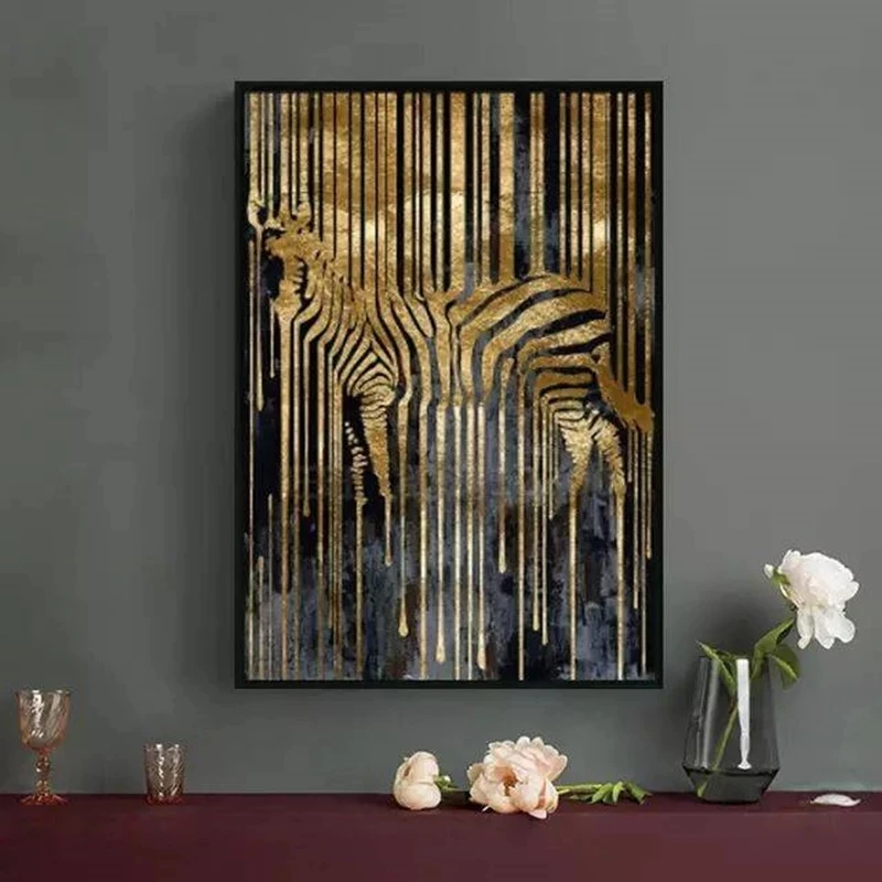 Абстрактная Золотая фольга в современном стиле, лошадь, Зебра, фотообои и принты для гостиной, домашний декор