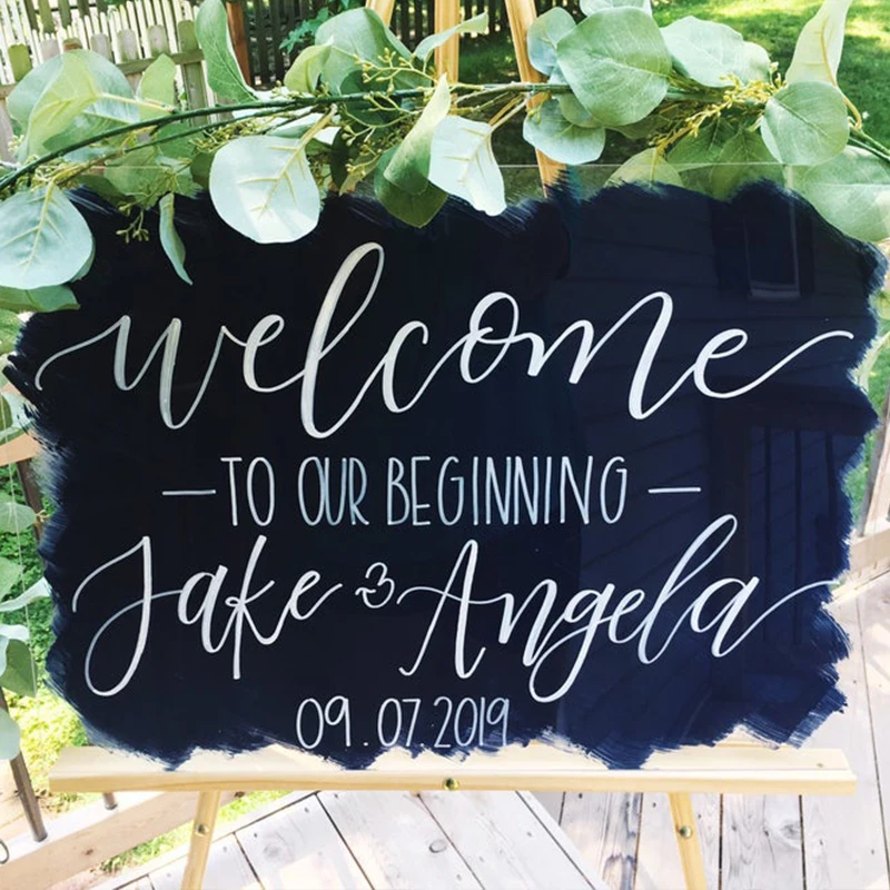 Акриловый Свадебный знак, Свадебный знак приветствия, Свадебный знак с каллиграфией, знак для свадебной церемонии, акриловый Свадебный знак с рисунком
