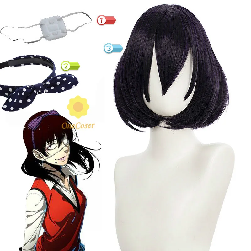 Аниме Kakegurui Midari Ikishima Косплэй короткие темно-фиолетовый парики термостойкие волокна волос + бесплатная парик Кепки вечерние девочек Для женщин реквизит