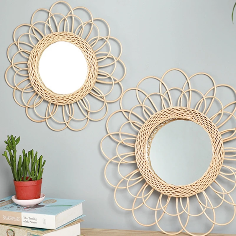 Декоративное зеркало в форме солнца из ротанга, инновационное художественное украшение, круглое зеркало для макияжа, настенное зеркало для ванной