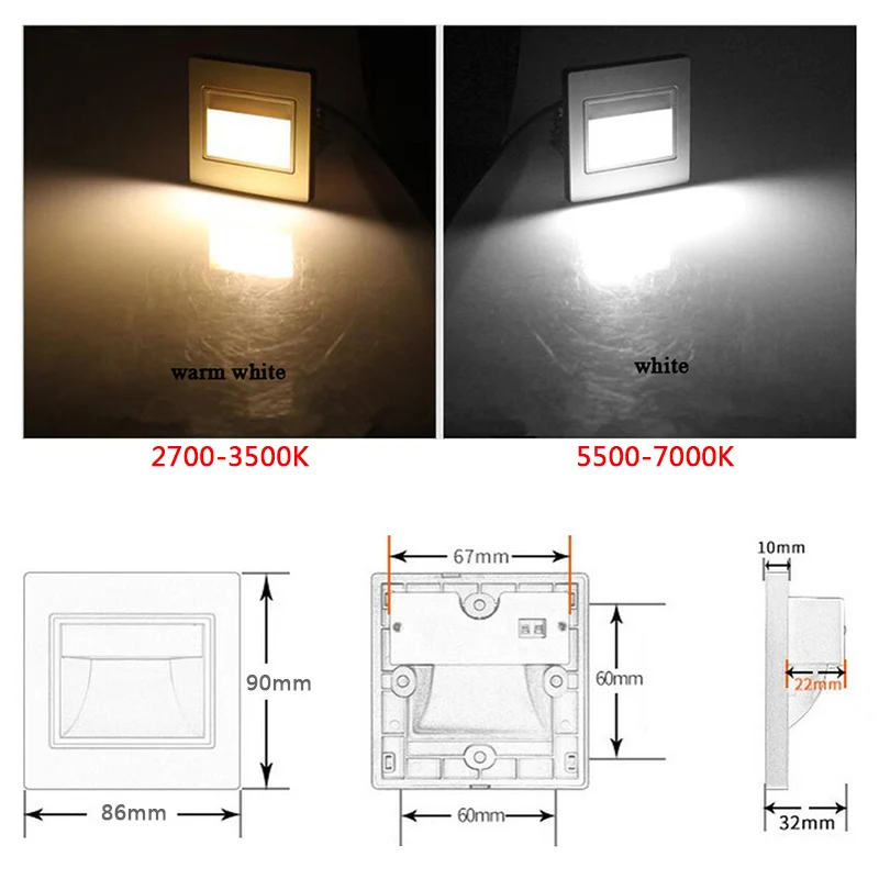 Материал: АБС-пластикМощность: 2 ВтНапряжение: 100-260 ВСветильник источник: SMD5730 светодиодныйЦвет излучения: теплый белый, холодный белыйЦветовая температура: 2700-3500K (теплый белый); 5500-7000K (холодный белый)Цвет корпуса: белый, серебристый, черный, золотойРазмеры: w90мм * l86мм * h32мм