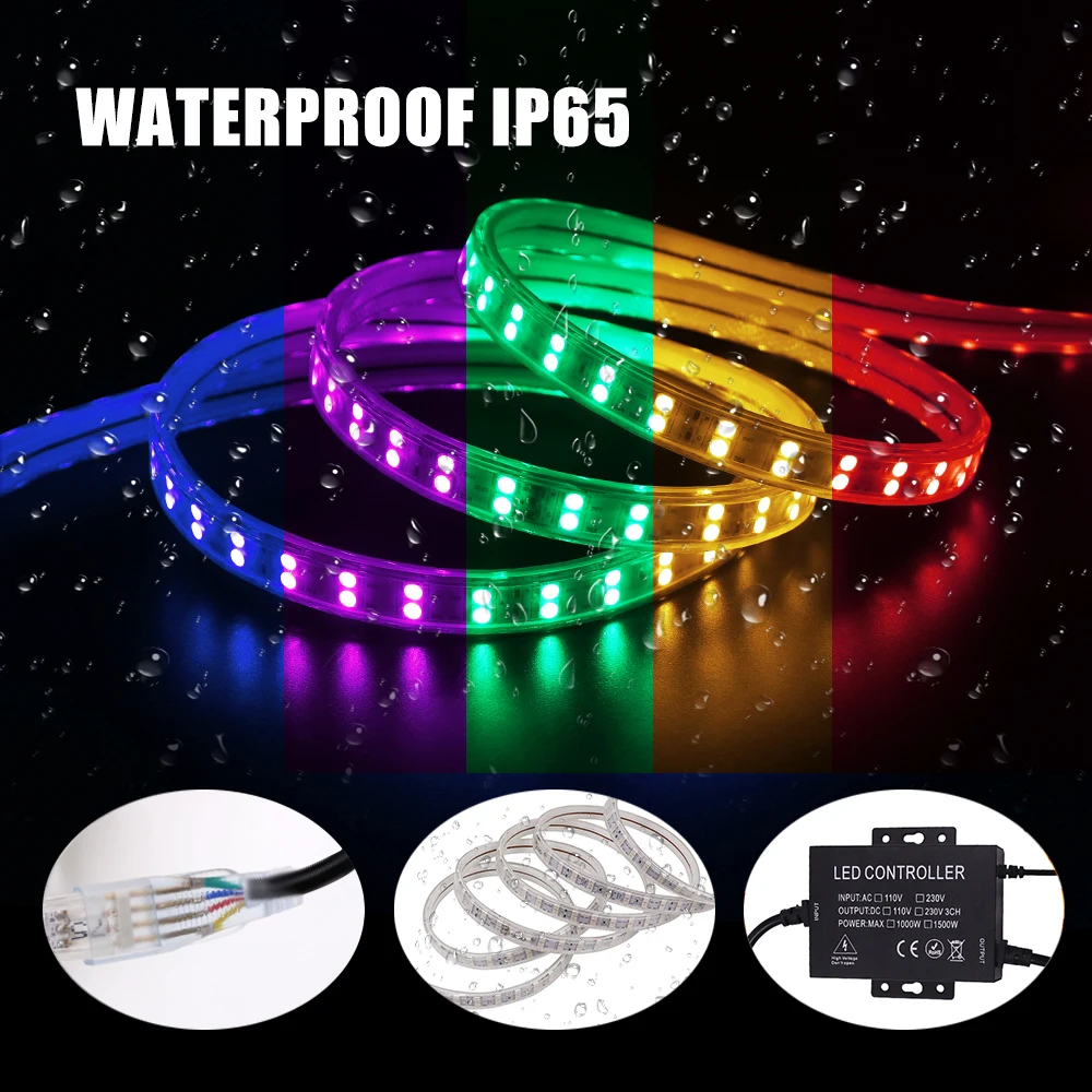 Светодиодная ленсветильник RGB 220 В, Wi-Fi, 120 светодиодовм, двухрядная лента 1500 Вт, гибкая светодиодная лента с дистанционным управлением, водонепроницаемая полоса