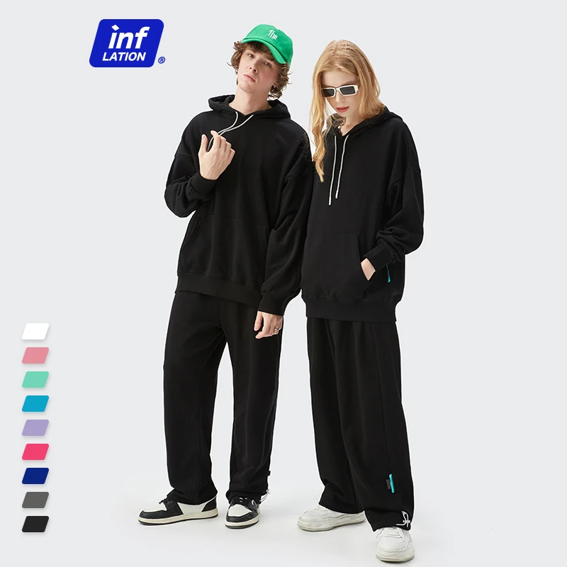 INFLATION, большой спортивный костюм с капюшоном для мужчин, уличная одежда, комплект с капюшоном, унисекс, набор свитеров, мужской Весенний костюм для бега