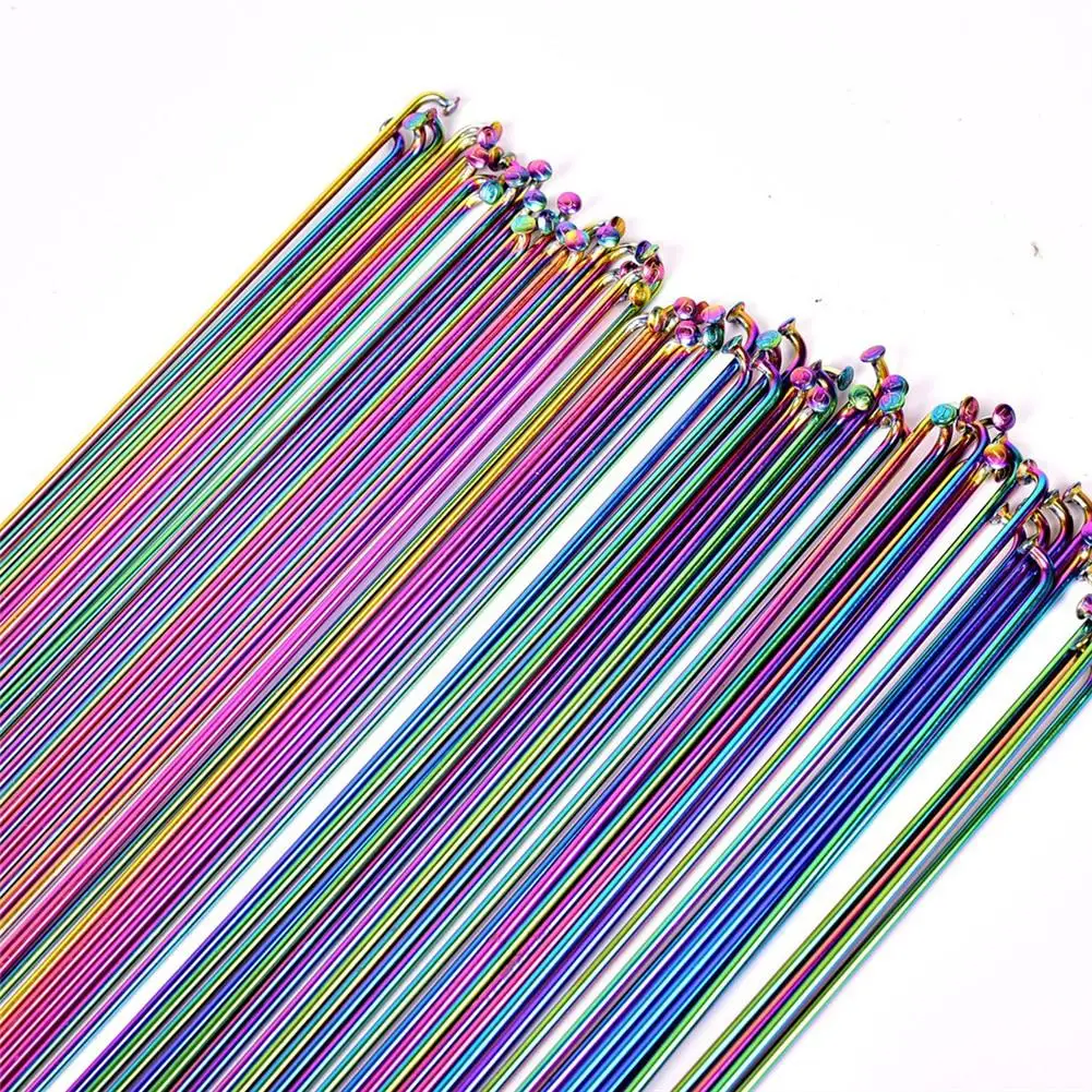 Тип: спицы из нержавеющей сталиЦвет: вакуумное цветное покрытиеМатериал: спицы для нержавеющей стали, спицы для поверхностного вакуумного гальванического покрытия (не технология покрытия водой, покрытие водой легко теряет краску)Диаметр спицы: 2,0 ммКепки Спецификация: нить 2,0 наружный диаметр с помощью 3,2 или 3,3 спиц ключ, дюймовый стандартСпецификация длины (мм): 257/259/261/263/265/268/271/273/275/278/291/293 мм и т. Д.