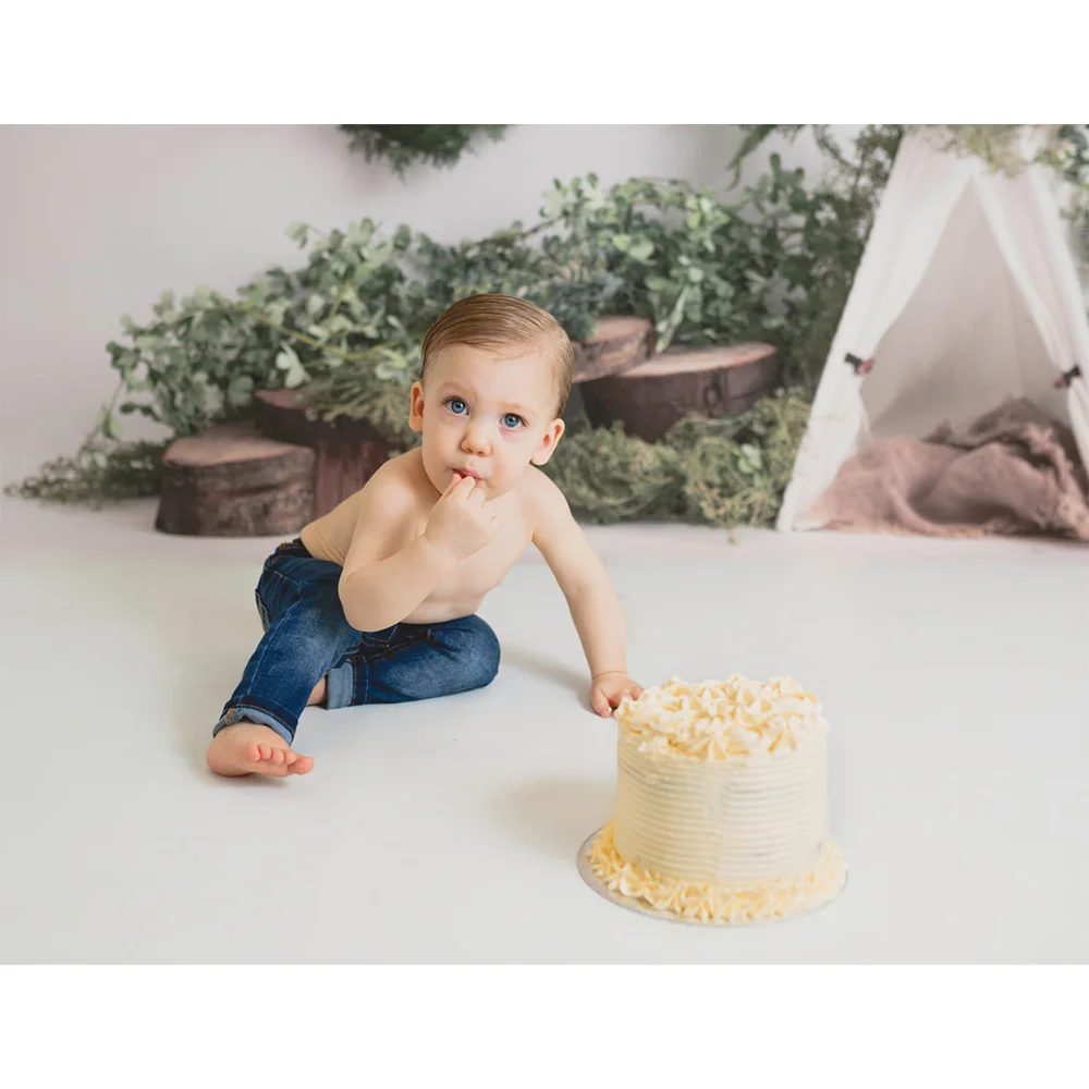 Фон для фотосъемки новорожденных с изображением дикой палатки, зеленых джунглей, травы, торта на день рождения