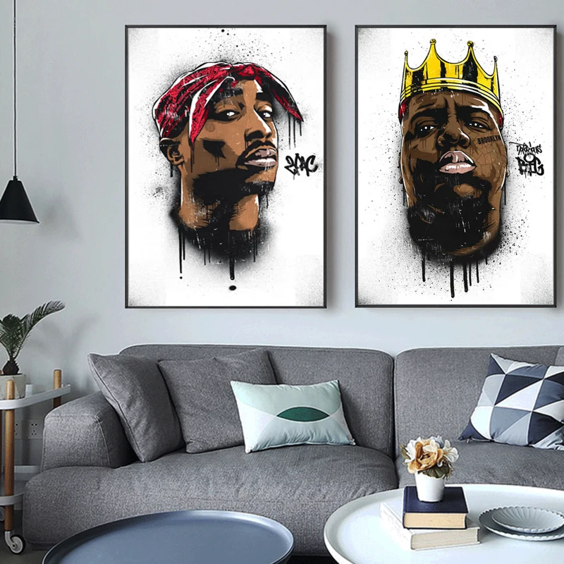 B.I.G Бигги Смолс Тупак 2PAC Шакур хип-хоп Картина на холсте плакаты и принты настенные картины для декора гостиной