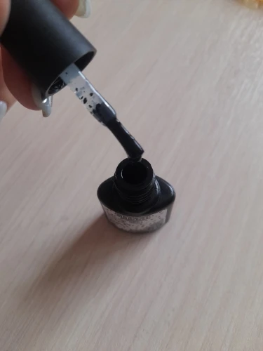 он ооочень густой, прям надо раскладывать скорлупки по ногтю. затем перекрывать топом, потому, что с липким слоем лак. хотя у меня мощная лампа и сушила я 2 мин, но мне понравился. буду пробовать в работе, как будет носиться. на пробу пойдет, т. к. маленький объем лака.