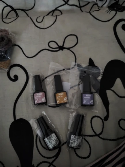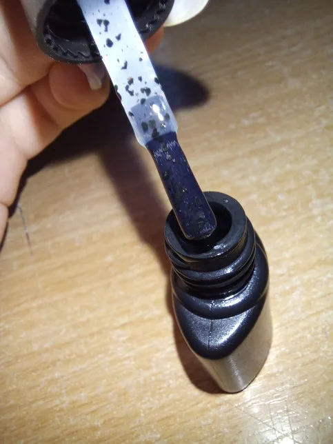 Доставка долгая, без отслеживания по России, положили в почтовый ящик. Сами лаки наносятся хорошо, полупрозрачные. Чёрные частицы я немного ещё распределила