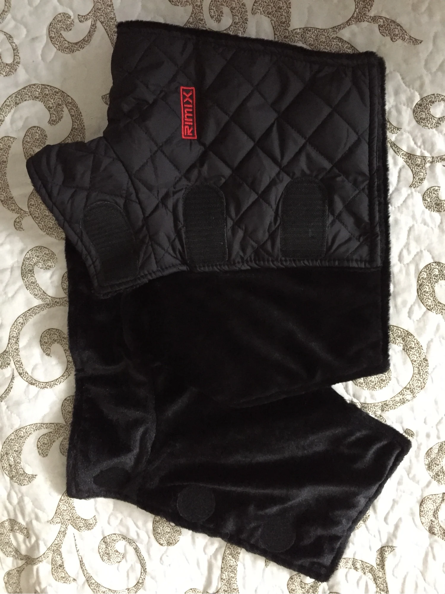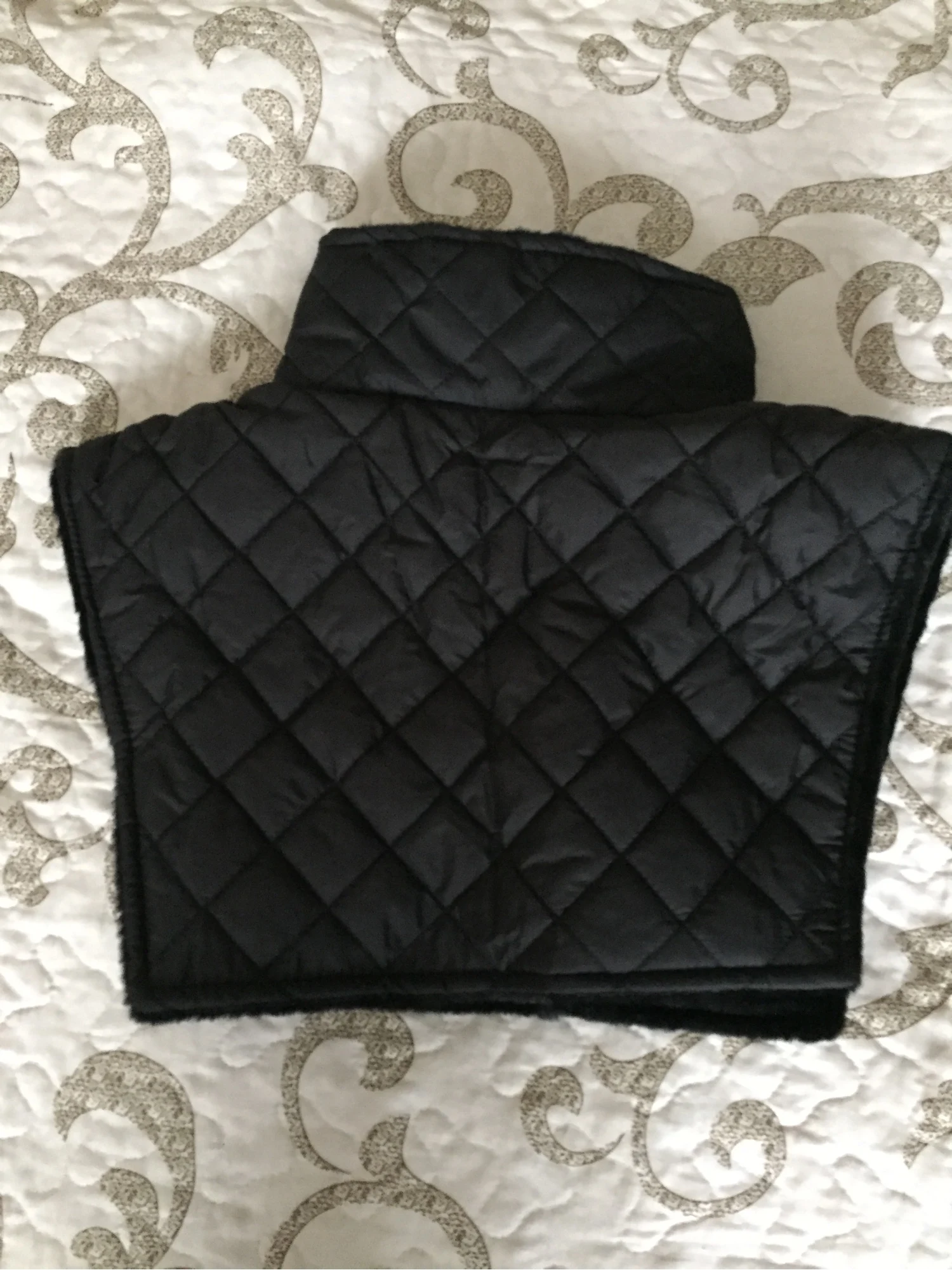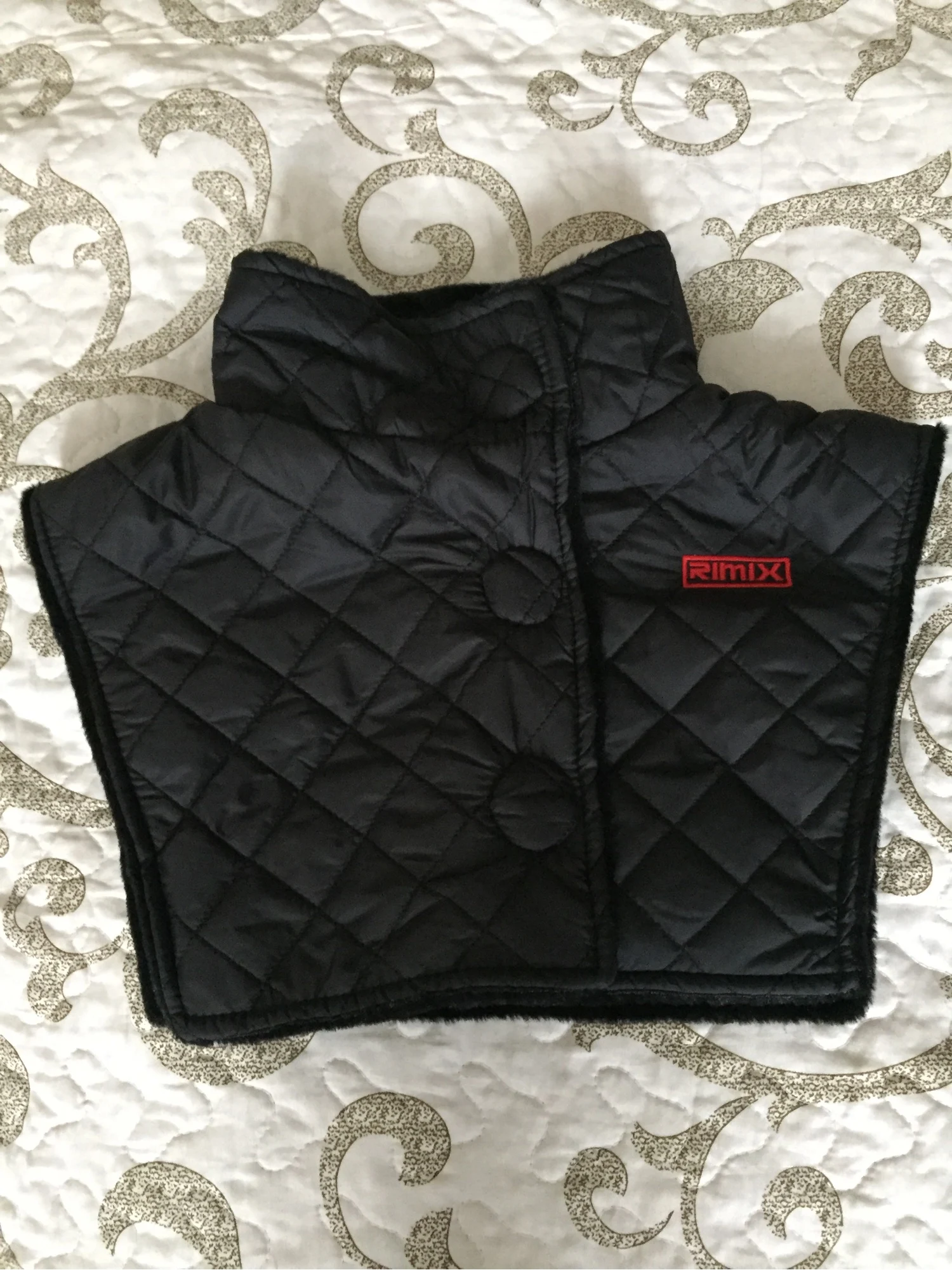 Шарфик хорошего качества красивый , тёплый. Плотно облегает спину, шею и грудь класс. Не обычная форма, удобный , быстро надевать, легкий и застёгивается липучками. Материал похож как нам выдавали зимой жилетки на работе.Но вот посмотрим как поведёт себя на первой стирке. :)