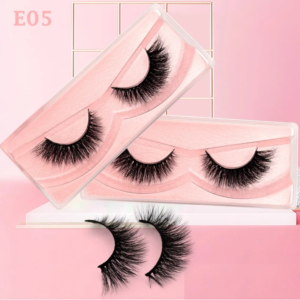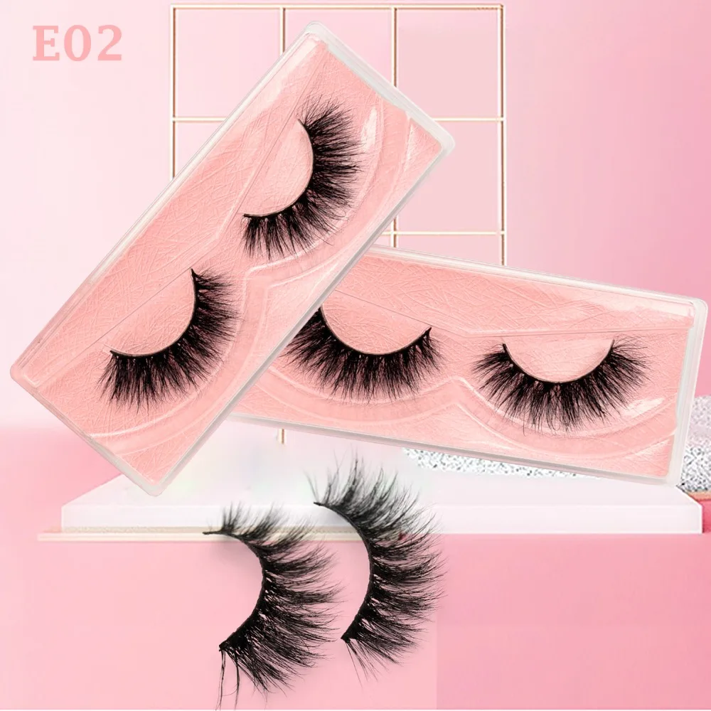 -2 пары ресниц с розовой блестящей мягкой коробкой